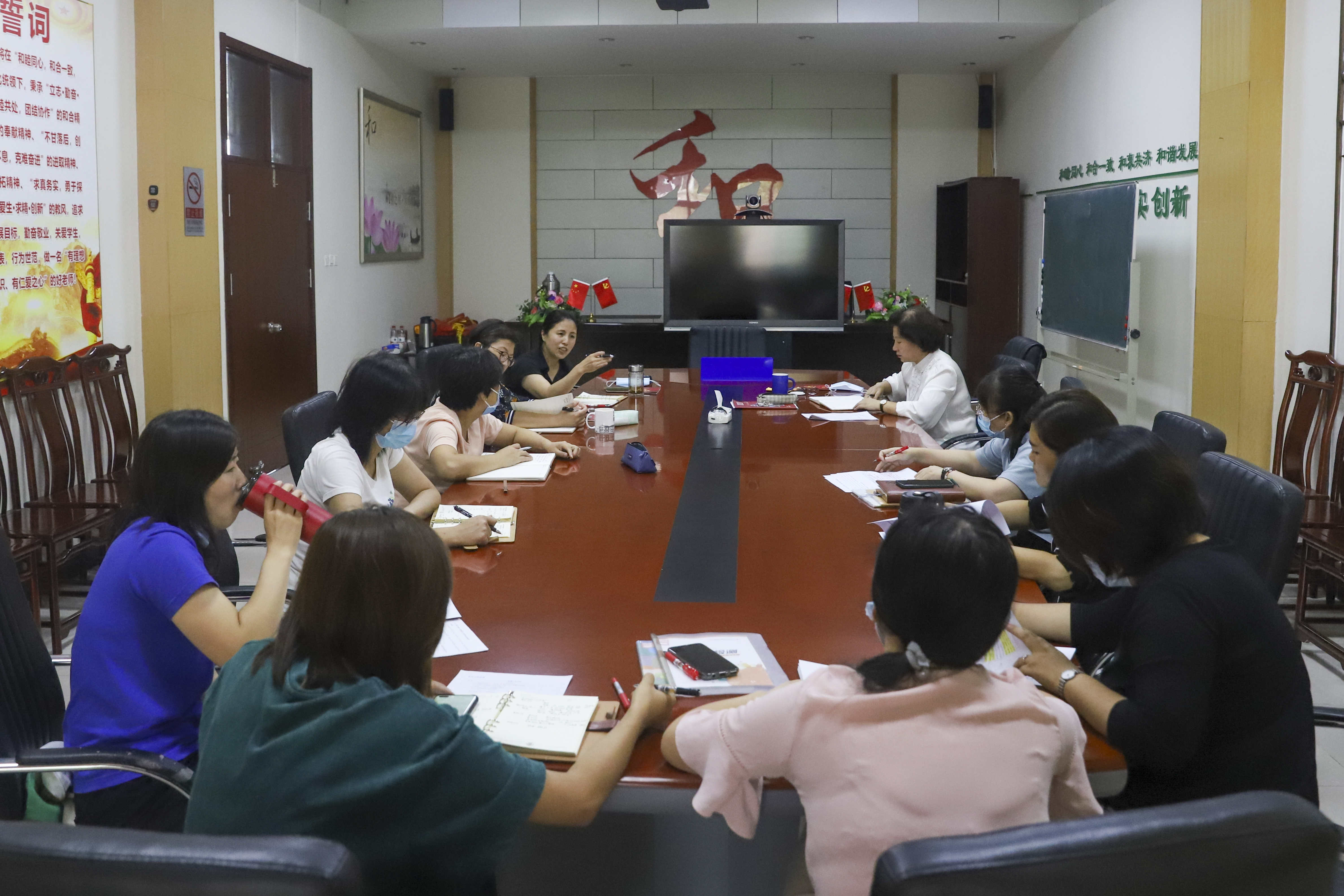 殷桂萍校长利用数学教研组长计划交流之时,进行如何提升教研组工作的培训:“强调教研组长要积极带动组内年轻教师,齐头并进,起到模范带头作用,以身作则,用个人能力、魅力带动组内发展;老师们要立足课堂,扎实教研,凝心聚力,共促成长,提升课堂教学效率,落实‘双减’政策。
