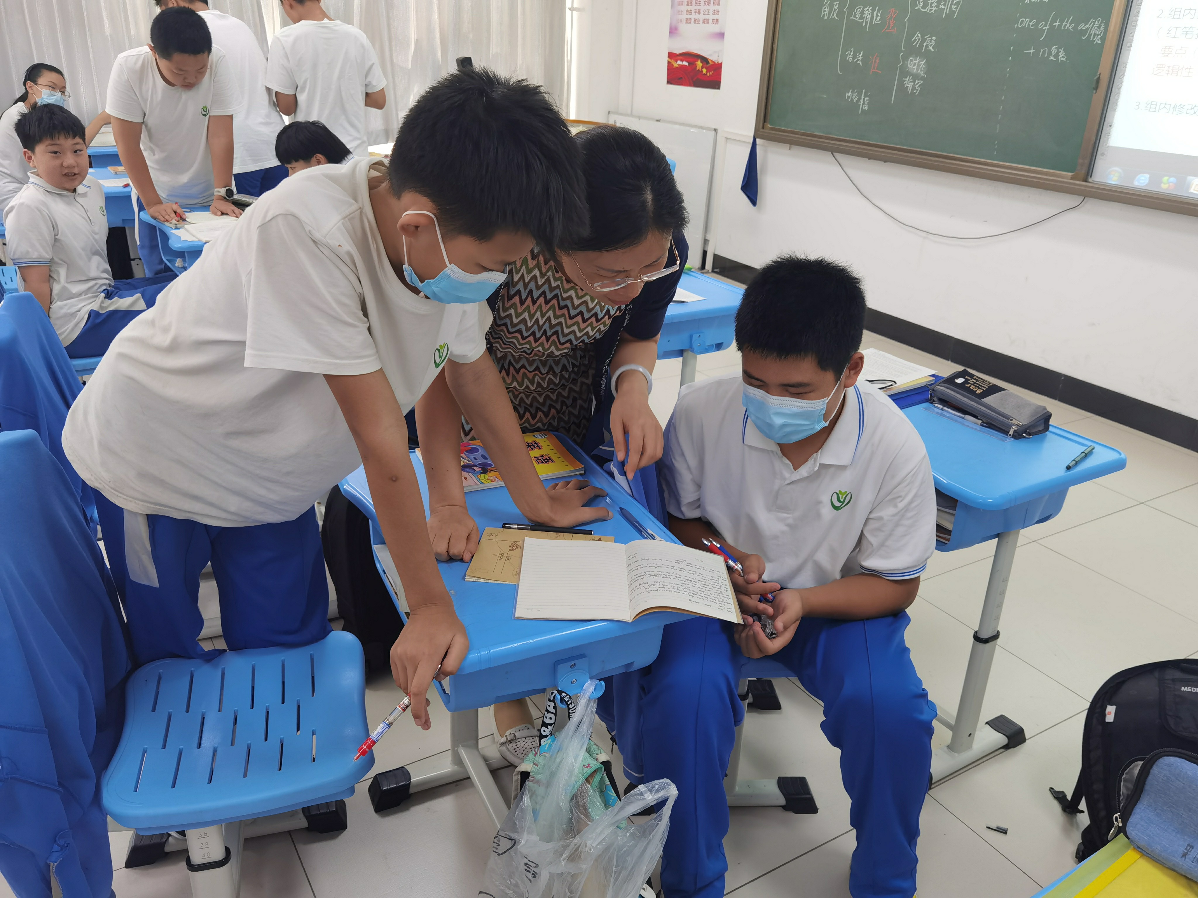 英语组老师们集体观摩了初二年级王珊珊老师的一节写作课。在这节作文讲评课上,王老师首先给孩子们呈现了作文评分的四个维度,然后老师依照以上几个维度,给学生做了点评示范。在小组活动中,同学们讨论得非常热烈。他们一面在讲台上很大方地展示自己的作文,一面很严肃对被圈画出来的问题进行质疑。小组活动真实高效,作文讲评课达到了预期的教学目标。
