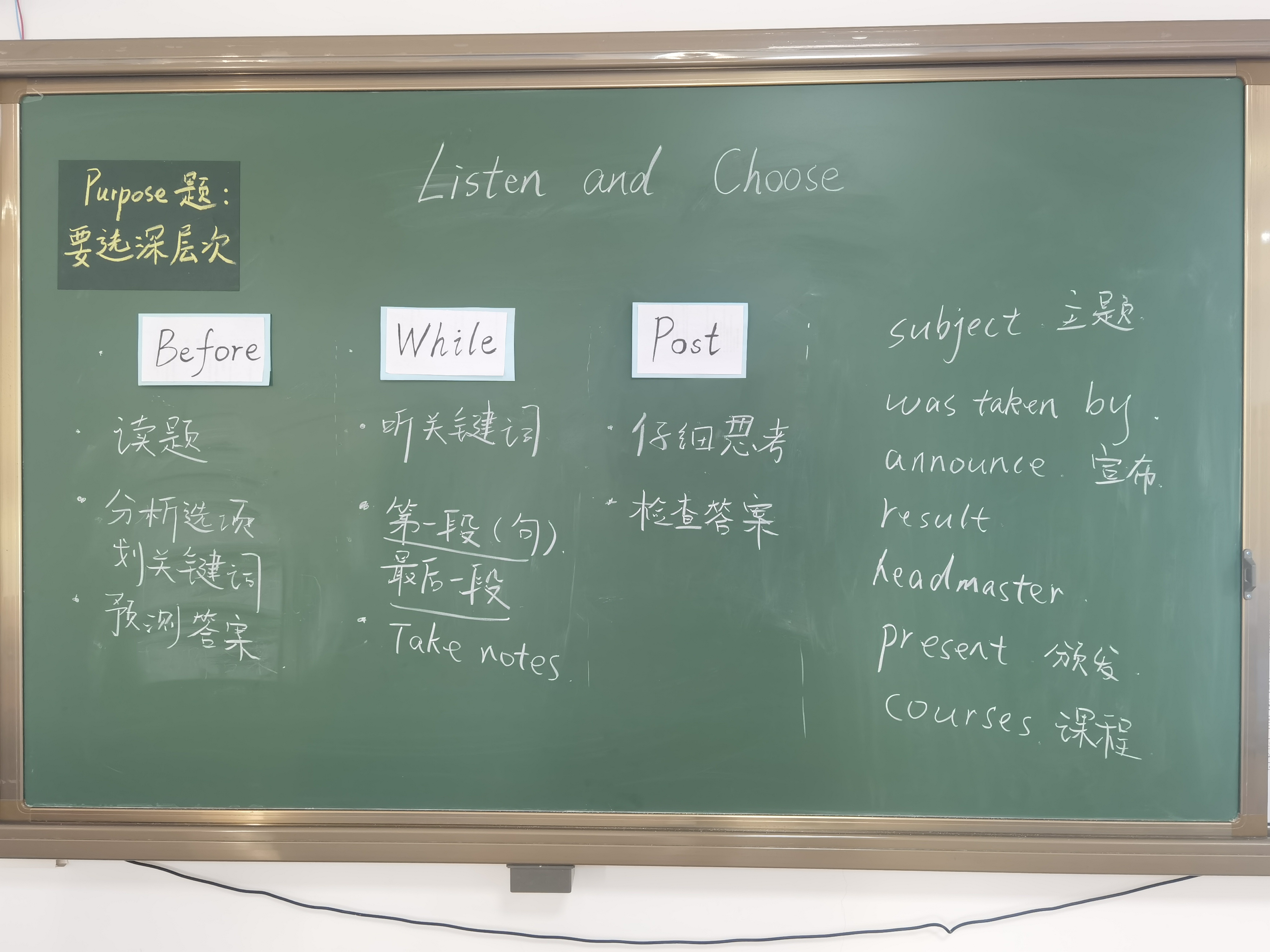 试卷讲评课是英语教学中的常见课型,尤其在初三复习阶段,它是师生教学双方“反馈-矫正”的过程,也是培养学生英语学科核心素养的良机。为了帮助学生弥补知识欠缺,改进解题策略,备战即将到来的听说中考,张炜育老师于2021年11月26日在初三(19)开展了题为Listen and Choose的 试卷讲评课。