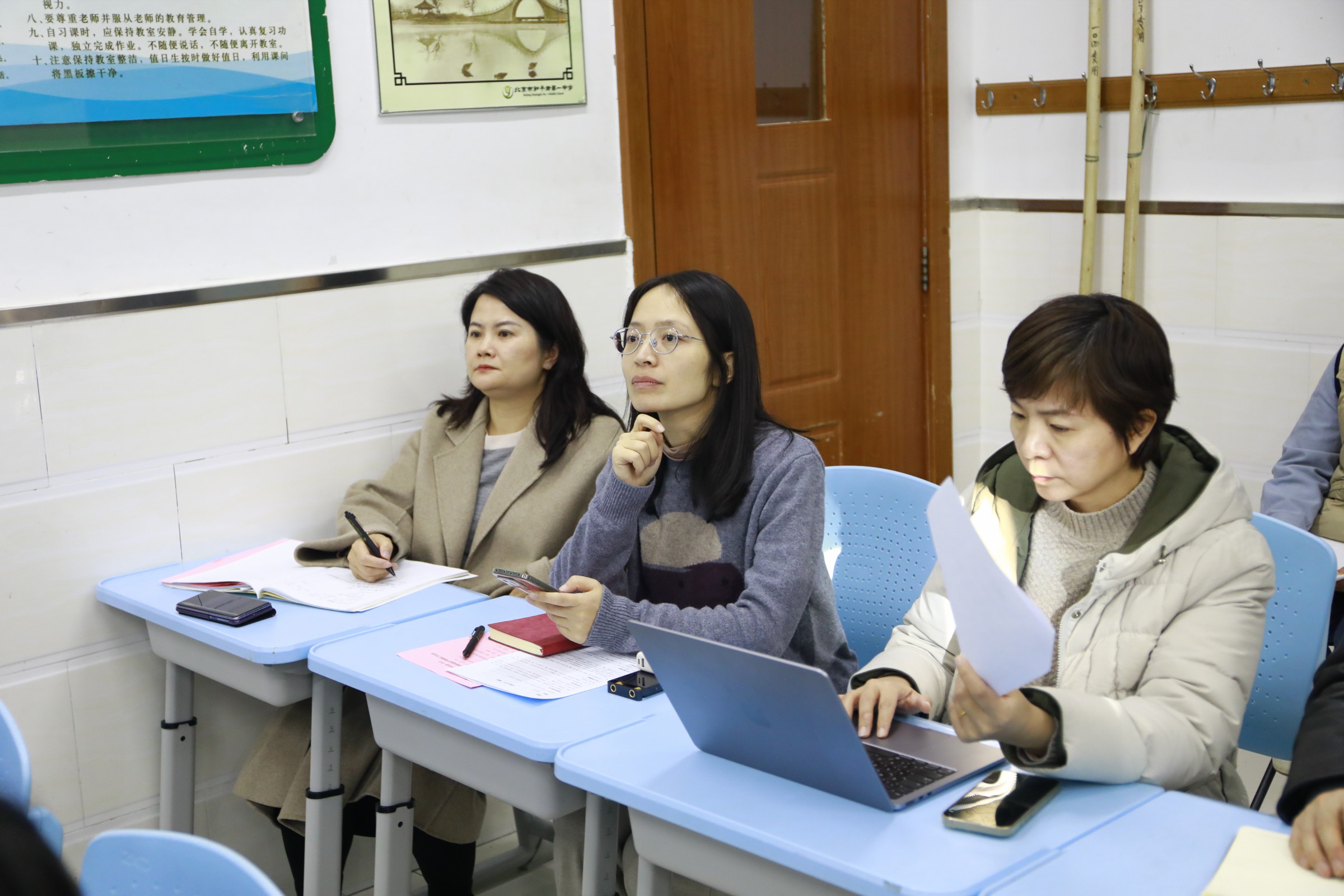 专家组深入语文、英语、地理、思想政治四个学科进行听课,对四个学科教研示范建设情况开展课堂评估。