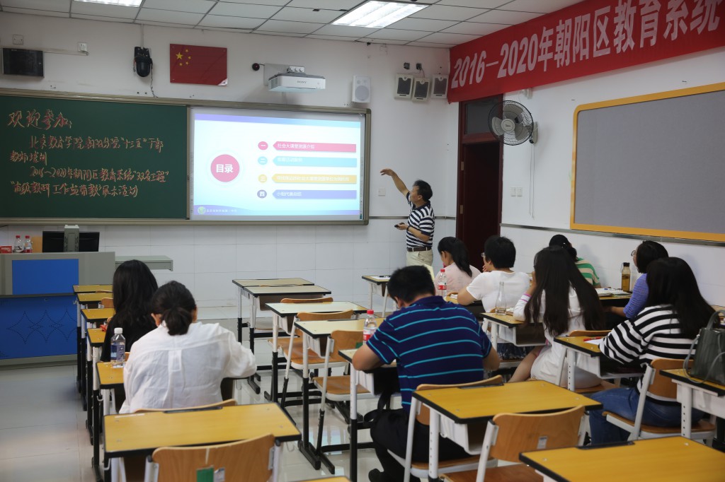 2019年9月21日上午8:30-11:30由北京市和平街第一中学和平街校区初中校区北京市骨干教师李冬生老师主讲的《如何设计一日综合实践活动》培训三班正式开讲。李老师作为我校培养起来的北京市综合实践活动的骨干教师,积极努力的把自己的点滴收获和体会毫无保留的呈现出来,积极申报了由朝阳分院和朝阳教研中心联合举办的“朝阳区干部教师培训课程”,该课程经历了申报,专家论证,开班前朝阳分院专家培训、组班申请,教委审批、上交4节教学设计,4节对应的PPT核审材料等一系列环节,可以挂网组班报名,最终可以开班。李老师的课程已经入选“朝阳区干部教师研训开放型微课程资源库”,它是由朝阳区中小学干部教师研训课程建设领导小组和北京教育学院朝阳院主办的,以构建丰富多元、个性化的研训课程资源,支持学区和学校教师研修活动,为全区市级骨干教师搭设辐射平台,开阔教师视野,促进教师专业成长,提升一线教师的核心素养为目的。李老师用了三个小时的时间与到会的教师们进行交流:从2017年12月教育部下发的《中小学综合实践活动课程指导纲要》的解读,到介绍我校对综合实践活动的高层定位、课程开发、组织管理、教师的发展和学生的收获。从“学科知识如何与综合实践活动相结合--寻找到学科知识怎样与综合实践活动整合的契合点,激发教师们能够参与综合实践活动的热情”到“发现学校附近的社会大课堂资源---让教师们明白“社会是一个大课堂,是一本活的教科书。”从“学科综合社会实践开放研究课--介绍已经实施的活动方案开展的情况,寻找各学科知识与资源单位的结合点,寻找事半功倍的增长点”到“介绍已经研发的资源单位的课程--针对资源单位介绍如何设计一日综合实践活动”。从理论研究到活动实施,从资源的选择到方案的设计,从学科教师的参与,到学生成果的展示,从教师的专业素养的提升,到学生核心素养的提高;李老师认真细致的进行讲解,适时与教师们互动,解答学员们提出的有关疑难问题,尤其是在介绍到我们和平街第一中学也是北京市社会大课堂基地的时候老师们都感觉很亲切,原来社会大课堂就在我们身边,我们更要应该充分的利用这个资源,多多的开展综合实践活动。通过学习对综合实践活动有了新的认识,对参与设计实施综合实践活动有了浓厚的兴趣,尤其是学科知识与综合实践活动的有机契合点的渗透,更是一石激起千层浪,引发了大家讨论的热情。对李老师的高端站位、理论加实践,亲切自然、风趣幽默的授课方式大加赞赏。本次干部教师培训工作得到初中部各位领导的大力支持,后勤保障工作准备充分到位,电教组的王占阳老师全程陪同,得到参训教师的一致赞许。研训活动在严肃认真和谐的氛围中结束。