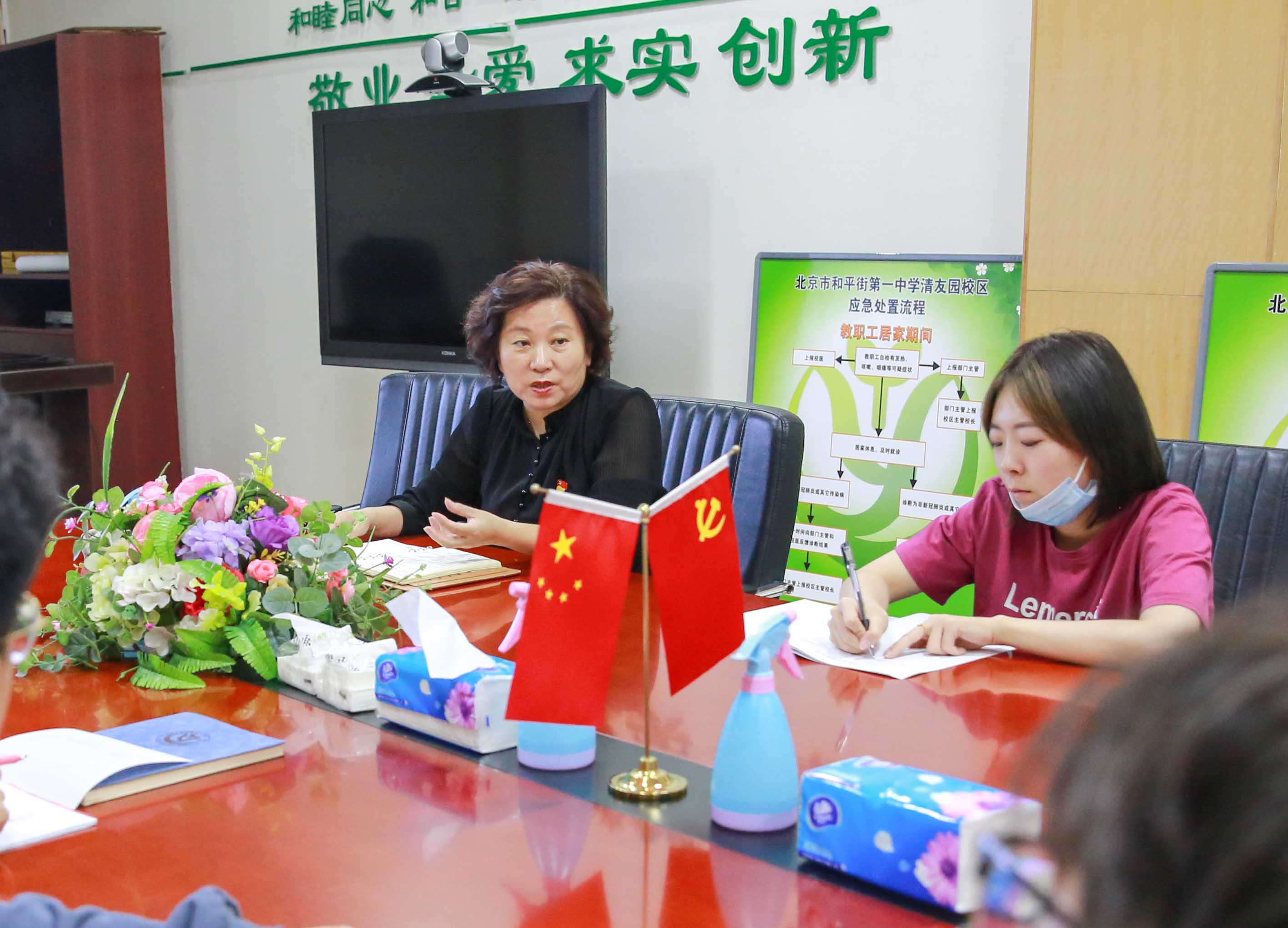 2020年9月11日下午15:30,北京市和平街第一中学清友园校区召开了2020年新入职教师培训会。培训会由校区主管校长殷桂萍主持,办公室主任熊玉荣、德育处主任何凤驰参加了培训会。