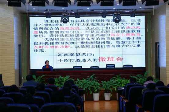 为加强学习,交流分享学习经验,促进教师专业成长,2017年12月5日,和平街一中和平街校区举行了教师学习交流会,由11月份赴杭州参加“创新班级活动 提升班主任核心素养”研讨会暨第八届班主任工作研究室年会的班主任代表和赴淅川支教的教师代表交流分享学习体会及教学经验。会议由曹成勇副校长主持,和平街校区全体教职员工参加了会议。