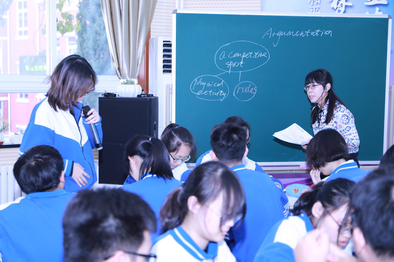 三位老师通过课堂教学展示、班会展示、学生活动展示、报告宣讲、沙龙访谈等形式展示了自己在教学实践、改革、研究中取得的经验和成果。和平街一中李金花老师展示了高三英语复习课《Argumentation》。课上,李金花老师用两道典型的例题为学生们深入浅出地讲解了在高考英语中难度最大的议论文的两种形式,即结构图题和观点论述题的解题方法,使学生在今后的阅读理解中能够产生清晰的思路,更加准确地抓住论点,理解文章。李老师还让学生们分组讨论自己做错的阅读理解题,促使学生在讨论中找到错题原因,从而形成更加深刻的记忆。课后,李金花老师作了“用智慧谱写‘爱的教育’”主题报告。报告中,李老师深情讲述了自己爱的选择、爱的教育、爱的智慧和爱的坚持的故事,引发了与会教师的共鸣。李老师的学生向与会人员表演了英语嘉年华活动的片段,充分展示了和一学子阳光、自信的精神风貌。最后,北京教育学院李宝荣教授和朝阳区高中英语教研员杜老师对李老师的展示课进行了点评。两位专家对李老师的课给予了充分的肯定,认为李老师的课目标明确、针对性强,把语言能力的培养融入到技能培养中,并能充分利用学生资源,值得大家学习借鉴。