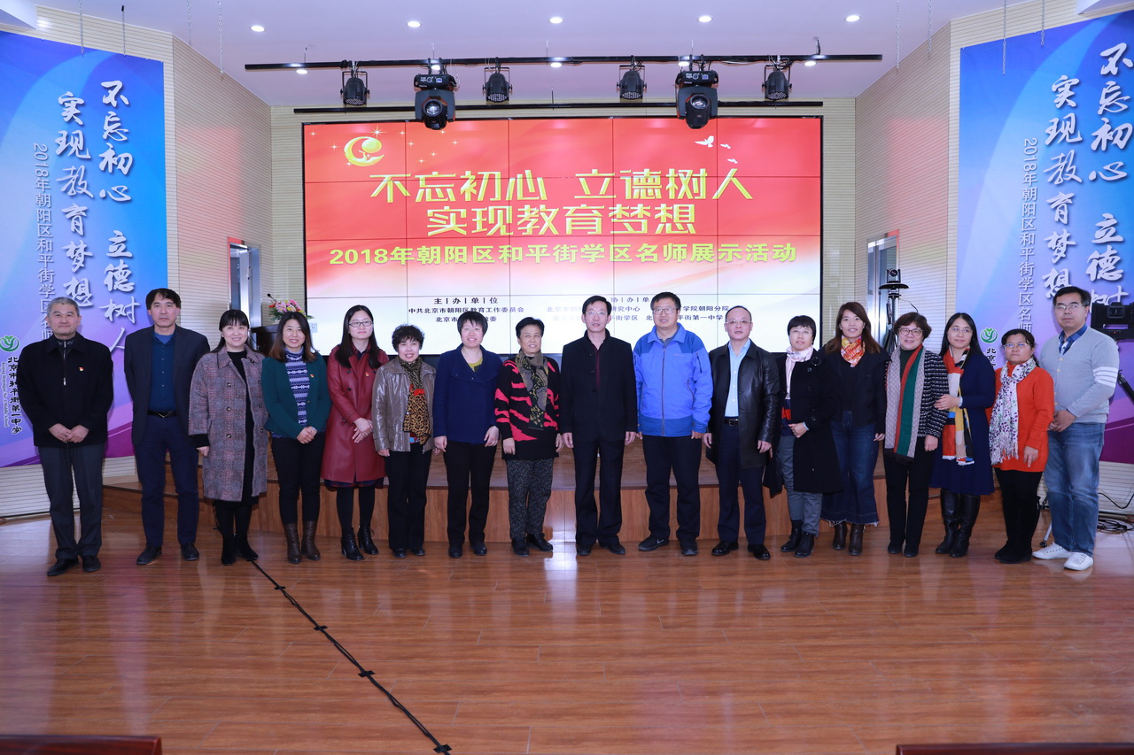2018年11月16日,2018年朝阳区和平街学区“不忘初心 立德树人 实现教育梦想”名师展示活动在和平街一中和平街高中校区隆重举行。朝阳区教委、和平街学区、北京教育学院、朝阳分院、区教研中心的相关领导和专家出席了活动;学区内11所中小学干部、教师,其他学区干部、教师,外省市干部、教师共270余人参加了活动。活动由和平街一中党总支书记李兵主持。