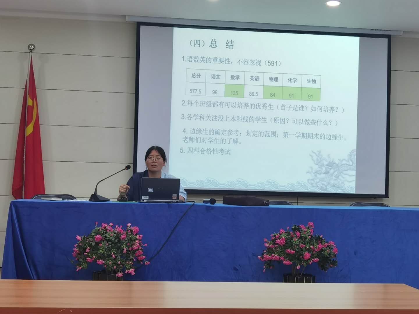 9月8日,莲葩园校区召开了上学期期末的成绩分析会,高二年级全体老师和教务相关领导参加了会议。