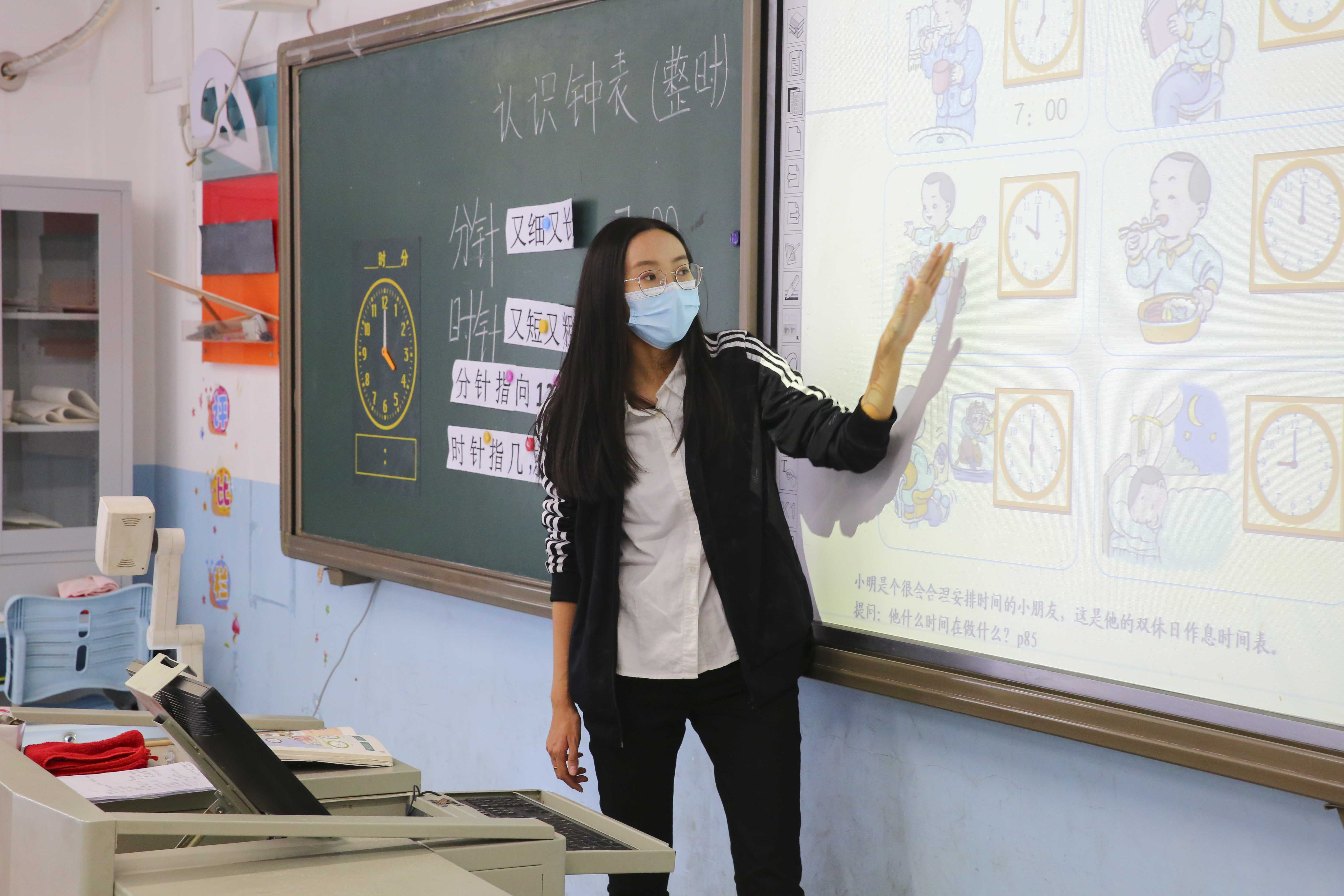姚思羽老师汇报的是一年级的数学课《认识钟表》。
