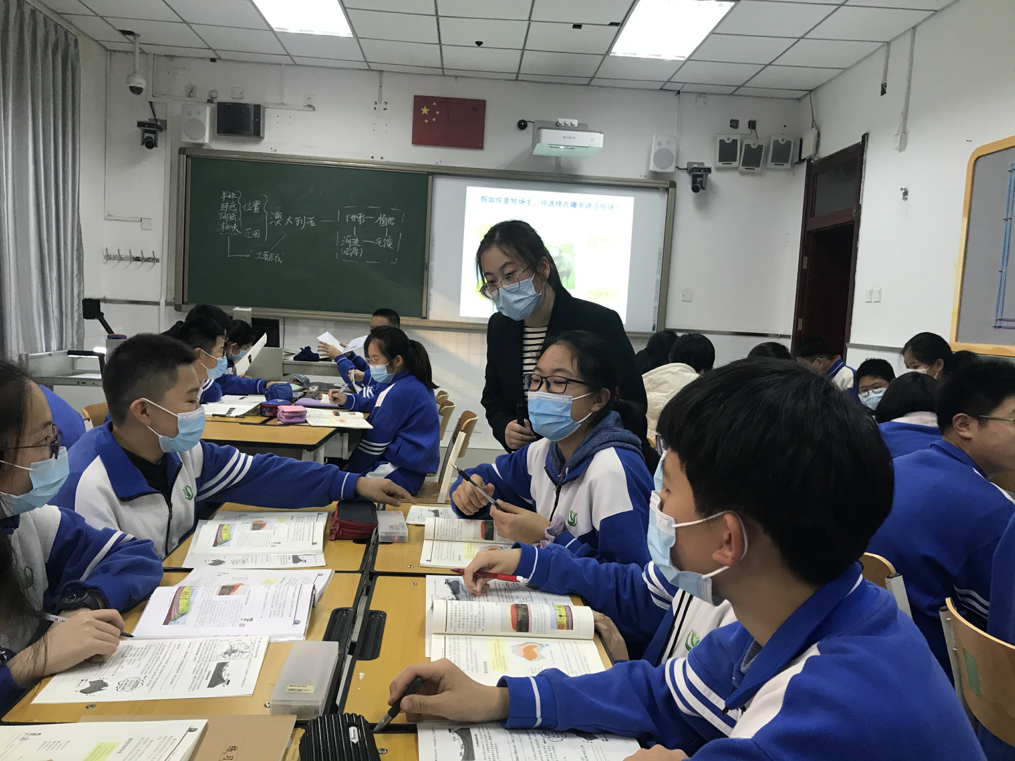 下午是来自三个校区的三位青年教师展示的以“课堂教学中有效落实学科核心素养”的地理课。第一节课是朝来校区张素芳老师的初一地理《天气和气候》,本节课创设“帮我计划去香山赏红叶”的情境教学模式,以“赏红叶、查预报、识符号、报天气、做决策、析气候、巧辨别”为教学流程,通过设计多样的学习活动,促进学生落实和掌握课堂重难点,引导学生理解地理事物的空间差异和联系,从地理视角看待生活中的现象和问题,引导学生树立人地协调观念。第二节是朝来校区杨静老师初二地理《日本之旅》,本节课创设“北京-东京-札幌的日本之旅”情境,从“衣、食、娱、住”四大方面引出对日本的位置、气候、饮食、多火山地震等问题的探讨。在教学中借助地图、资料、录像、视频等多种手段方法,逐步引导学生读图、识图-析图、总结规律-解决地理问题,逐步培养学生综合思维能力和地理实践力。第三节是初中校区孙倩老师初二地理《澳大利亚》,本节课以国旗、国徽引出澳大利亚位置的学习,将澳大利亚动物拟人化,探讨在澳大利亚独特自然环境中生活着的“土著居民”(野生动物)和“新移民”(绵羊)两种动物群体。创设“在澳大利亚建造牧场”的情境,引导小组从地形、气候、河流、植被等自然地理要素角度合作探讨牧场选址,在探讨中概括澳大利亚自然环境特征,有效完成重难点突破。课后,李老师就三位教师的教学设计、课堂呈现给予了高度的肯定。李老师说三节课很好将学科核心素养与教学实际内容相结合,活动形式多样、有趣生动,学生参与度高,较好的落实了学科素养,并提出了建设性的意见。