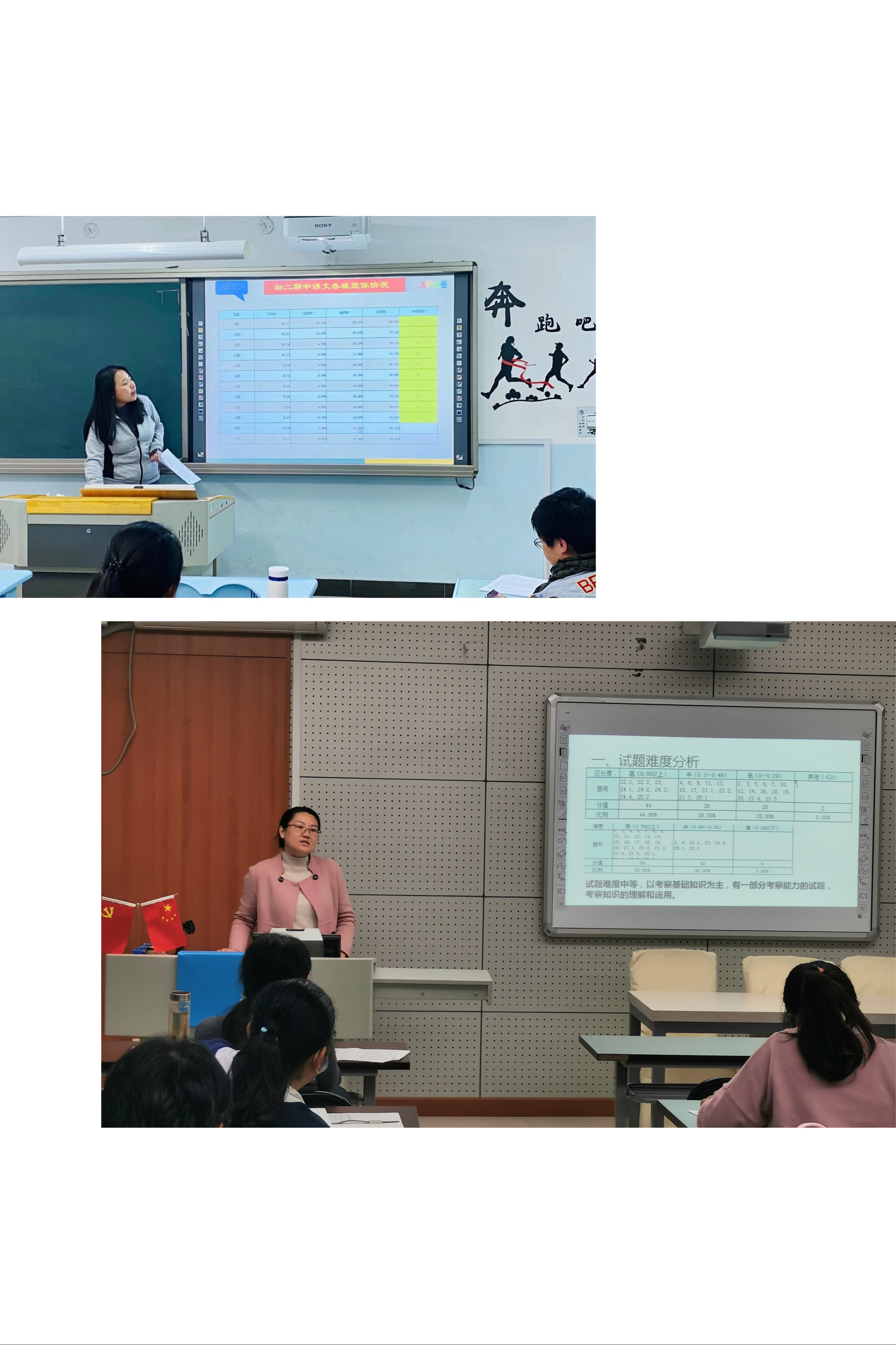 随后,各备课组长进行分析研讨汇报,通过大数据将量化分析与质性分析相结合,有理性有温度,既肯定了任课教师前段时间的付出与努力,同时也通过对比直观看到存在的不足之处和差距,并提出了具体的改进措施和应对策略。每位备课组长在汇报交流中都谈到了备课组前段时间的日常工作,呈现了高效和谐的备课组教研氛围,“人心齐,泰山移”高效团结的备课组是我们下一阶段前进突破的坚实后盾,既要立足于眼前,更要胸怀至三年。