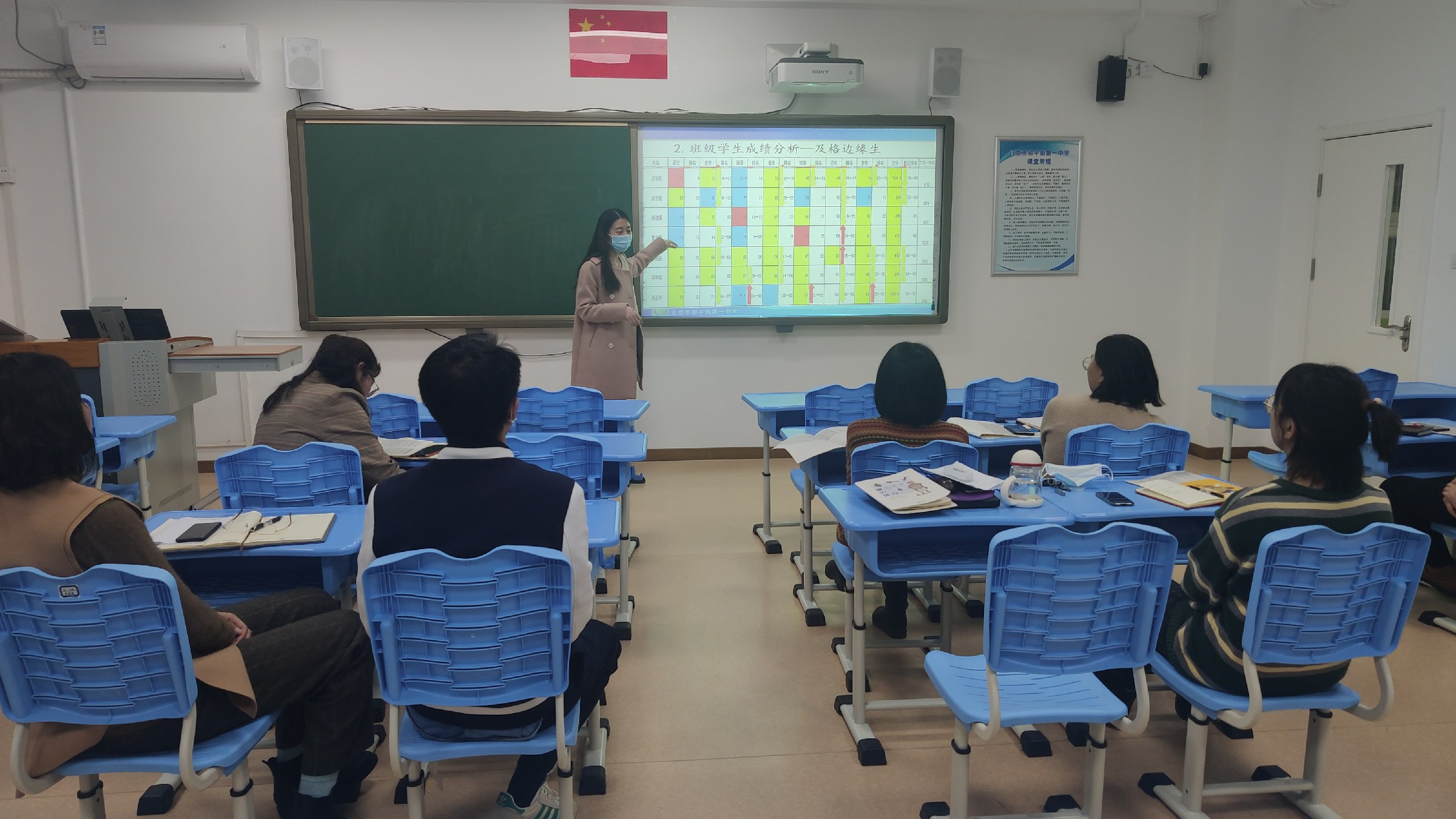 接下来进行了班科任教师联席会议。22班班主任王珊珊老师从学习态度、学习习惯、学习动力等方面分析了本班学生情况;23班班主任董佳琦老师从学科均衡的角度分析班级优势学科和弱势学科,寻找提升策略;24班班主任林殿吉老师着重分析了关注尖子生和边缘生的情况。会议制定了边缘生辅导的措施,在班里通过“一帮一”师徒结对,帮助学生寻找正确的学习方法,让学生更加自信、更加阳光。