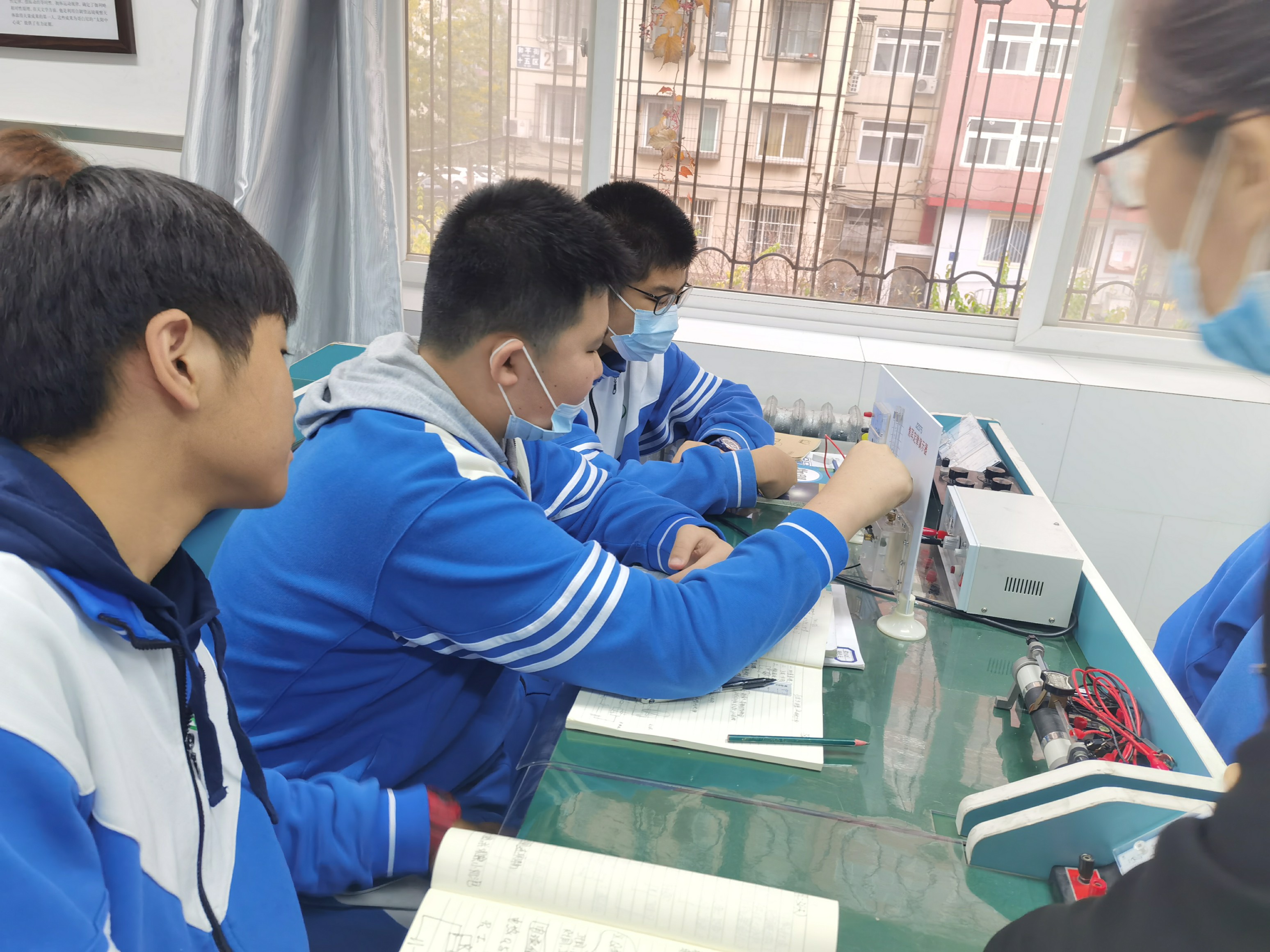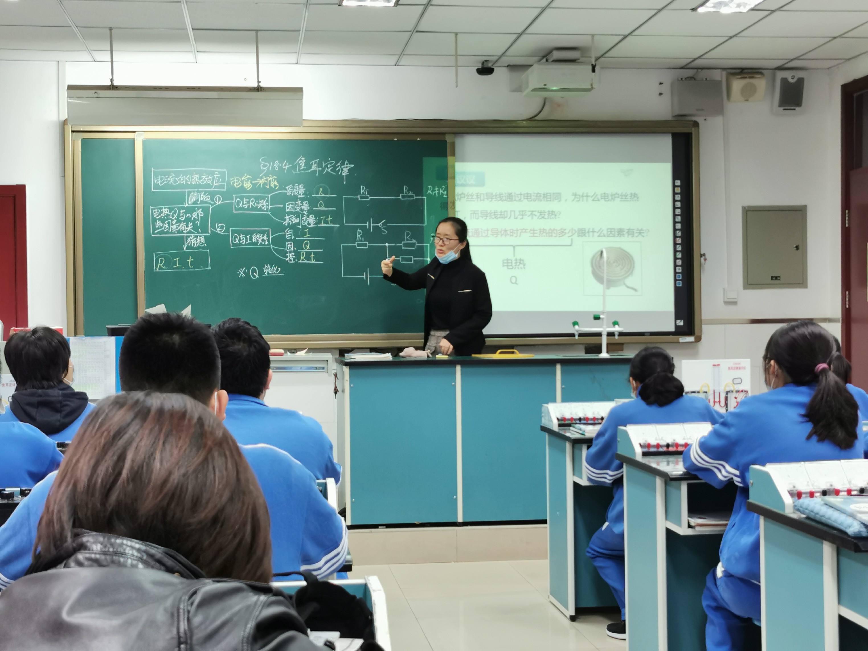 2020年11月17日第四节课,物理组教师冯海娟教师在物理实验室展示了一节课题是《焦耳定律》的评优课。校区主管领导邹小刚副校长、教务处教学马静主任、物理全组教师、评优课评委和其他学科老师参加了听课学习。