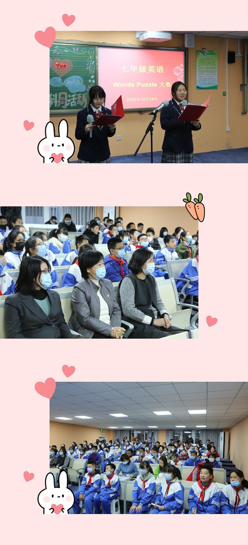 为了激发学生们学习英语的热情,和平街一中奥运村校区初一年级于2020年12月14号开展了紧张而激烈的英语学科月活动,给学生们提供了一个展示英语风采的舞台。