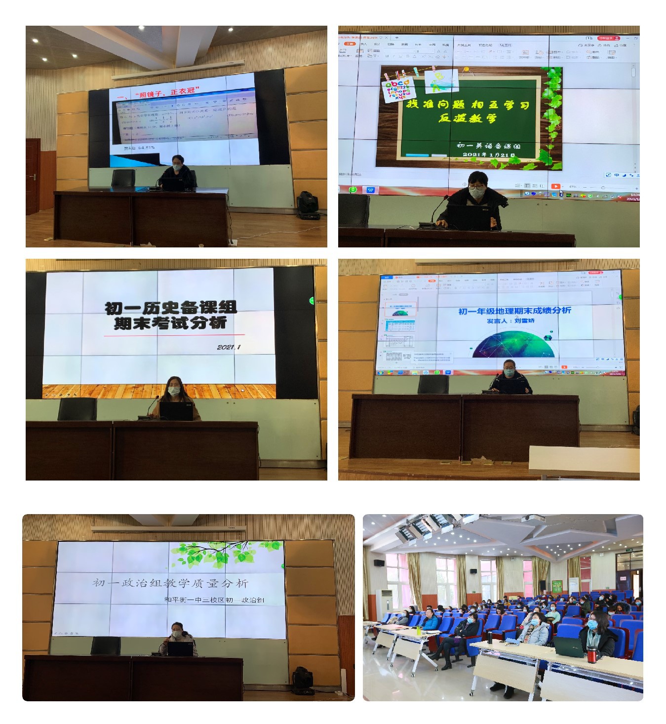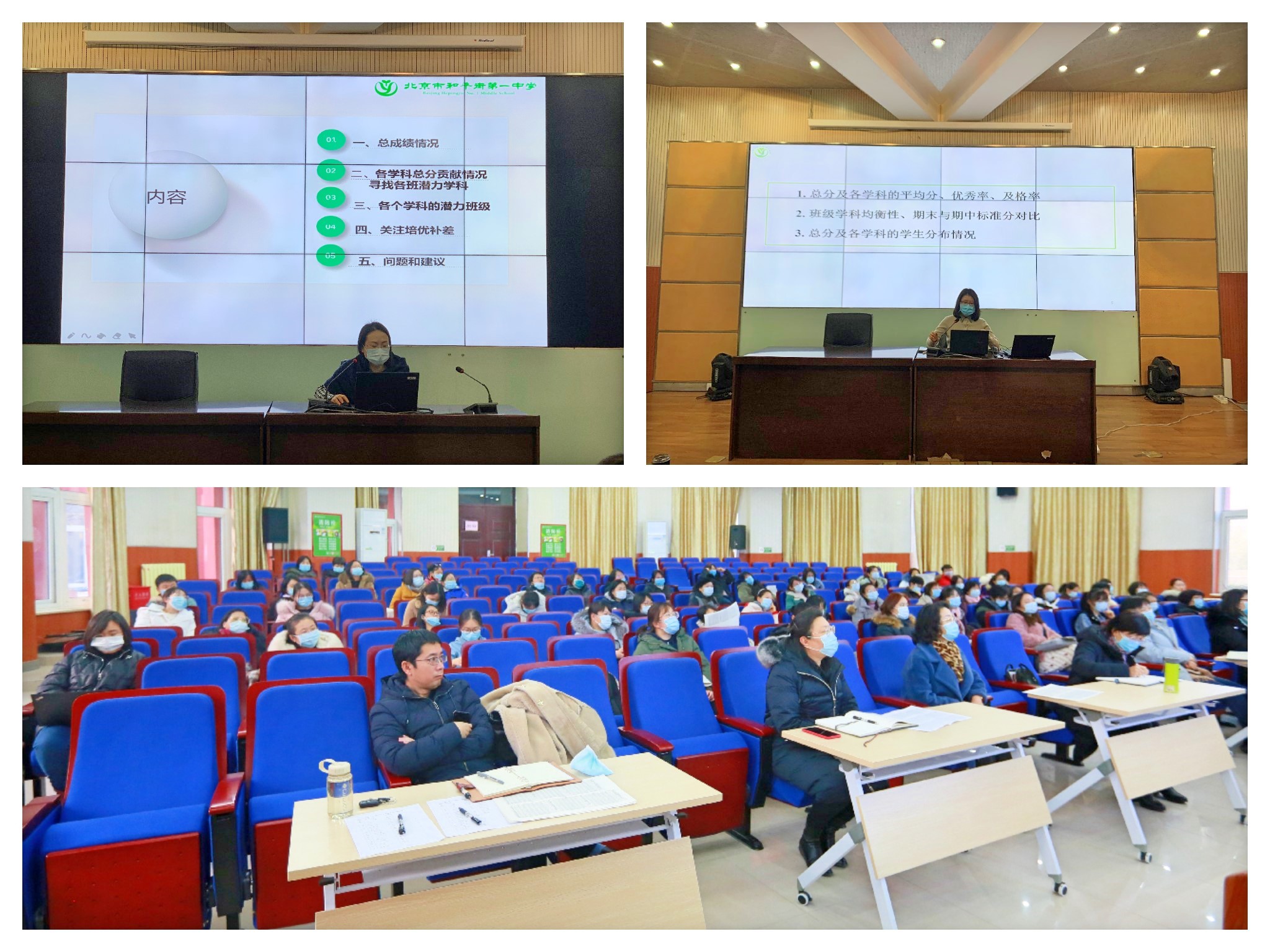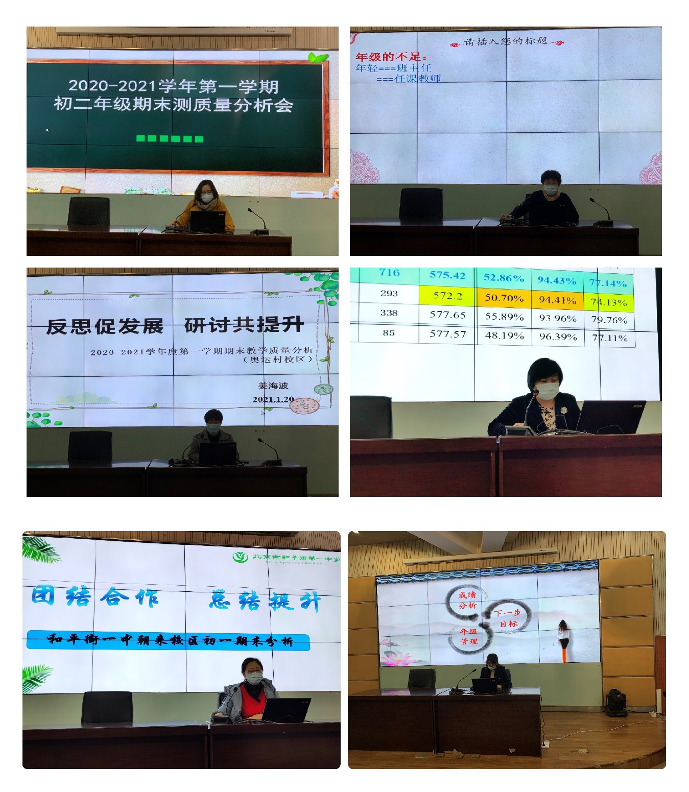 为提升教学常规管理的实效性和精细化程度,提高教师利用数据进行教学质量分析的能力,促进教师间的交流与学习,2021年1月20日、21日,和平街第一中学三个初中校区的初一、初二年级集中在朝来校区召开了期末质量分析会。陈秀珍校长、张静书记、张景鲜副校长、周建萍副校长、初中教学主管邓立校长助理、教务处黄国会主任、教务处冯英主任、教务处张劼主任及三校区初一、初二年级全体教师参与本次会议。