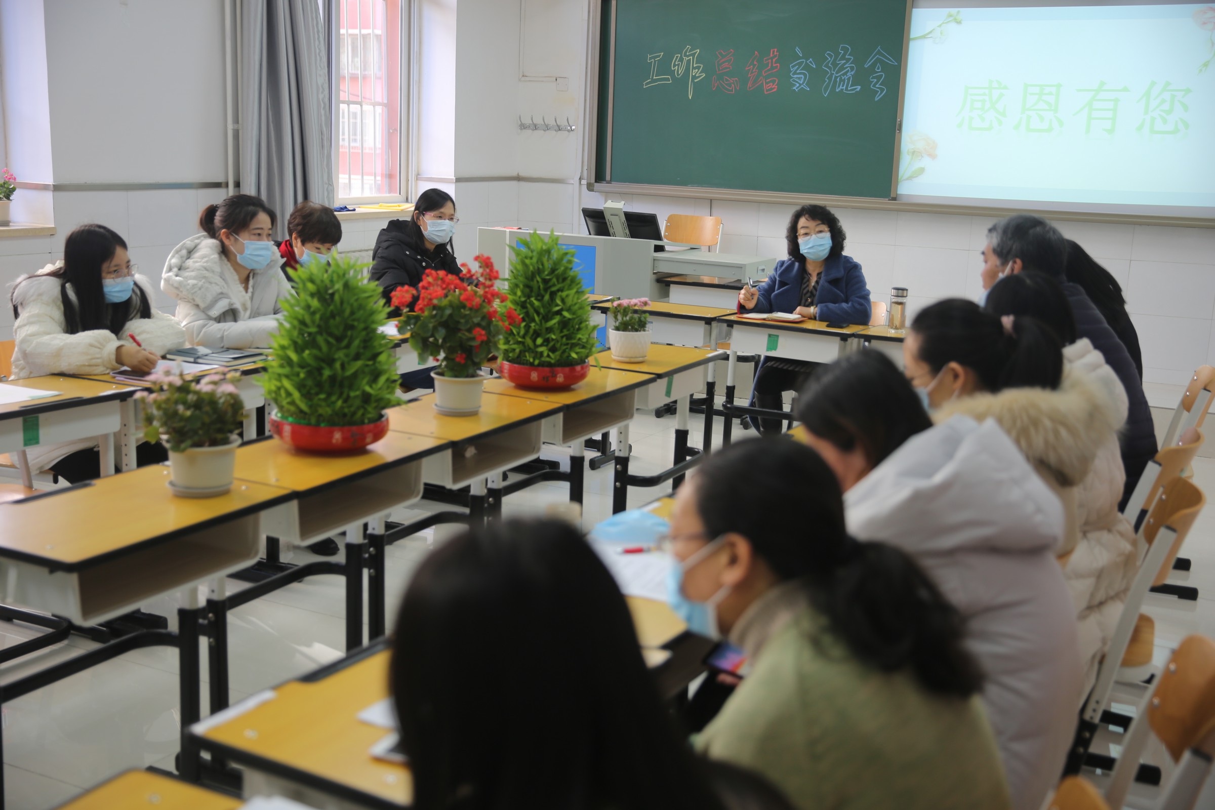 会议第一环节七位徒弟教师根据一学期和师傅教师学习的经历,总结自己在教学中的学习体会,反思教学学习中的不足,提出下一阶段教学成长的设想。张燕老师感恩师傅曲越老师循循善诱的引导自己走进文本,体会上课的各个环节。赵媛媛老师感恩师傅辛振红老师无私奉献,总是利用休息的时间为自己指导上课。裘文文老师和李莹老师感恩师傅张燕英老师手把手教自己分析文本,上好研究课。乔亚楠老师感恩师傅赵文江老师总是给予自己很多的空间,开拓自己的创造力。田真老师感恩师傅张莲郡老师给予了自己很多教学资源的利用。李涣老师感恩师傅李艳侠老师的每一节课都是示范课,给了自己很好的引领。他们感恩师傅既是职业生涯的引路人,也是生活中的良师益友,教会了自己很多做人的道理。第二环节是由师傅教师总结一学期徒弟们的学习过程,并提出了期望。他们高度肯定了徒弟们的认真努力,积极好问等优点的同时,期望他们,继续做好听课环节,因为听课是最有效的学习方式。其次,学习过程中做好记录,善于反思总结。因为有思考才有进步,才能够快速提升。第三,理论和实践结合,努力做一个研究型教师。