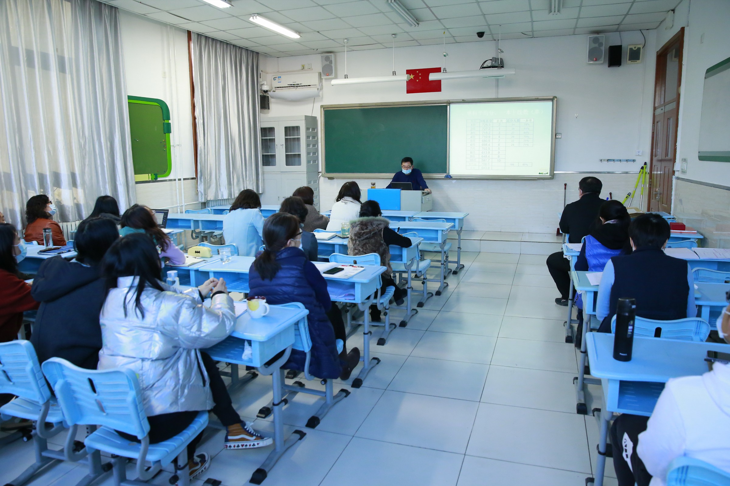 教育教学质量是学校生存、发展的生命线。为了进一步强化教学管理,不断提高教学质量,充分发挥期末考试的诊断功能,利用好朝阳区质量分析平台上的数据,从平均分、位次、上线情况等角度分析考试状况,反思前一阶段教学目标的完成情况,在总结经验、查找问题、确定措施的基础上明确后阶段教学目标与方向,推动学校教育教学质量的稳步上升,北京市和平街第一中学和平街高中校区召开了2020-2021学年第一学期的非毕业年级期末教育教学质量分析会。会议由各年级组长主持,校区主管曹成勇副校长和教务主任李春光分别参加了高二年级和高一年级的质量分析会。