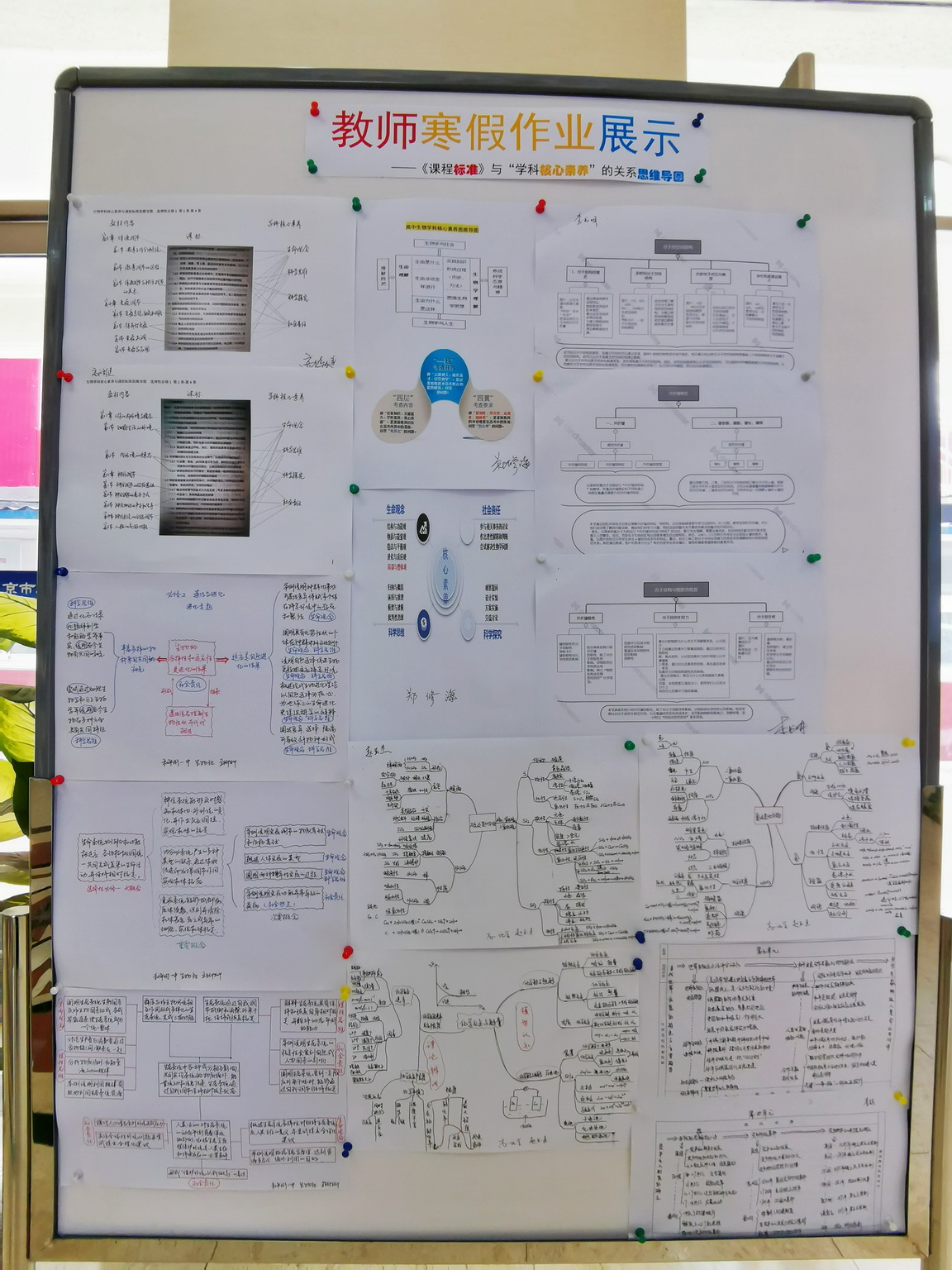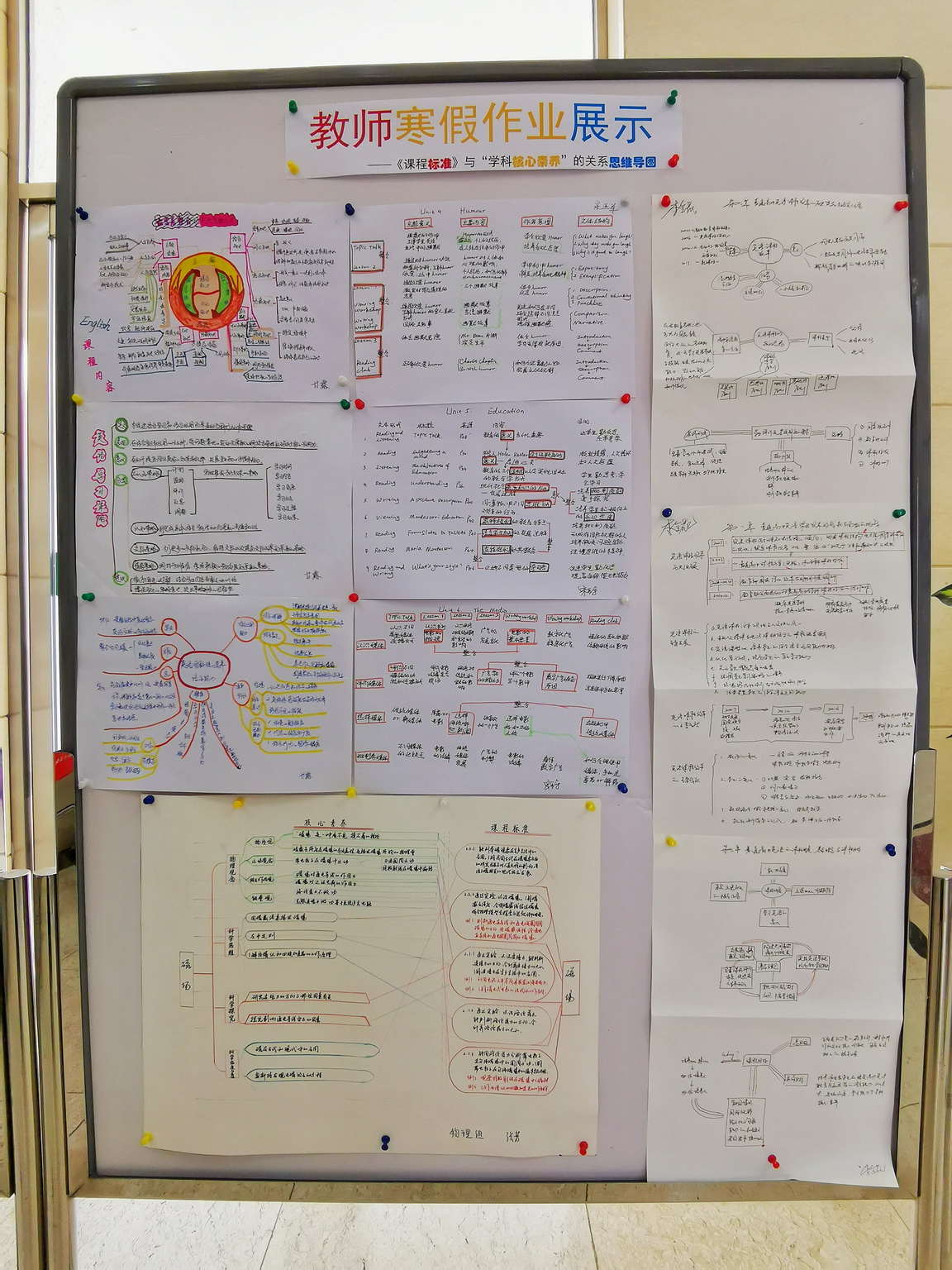 老师们积极参加活动,充分利用假期时间,认真研究《课程标准》与学科核心素养之间的关系,或手绘或软件编辑打印,一张张清晰的思维导图跃然纸上。2021年3月10日,学校把教师的寒假作业进行了展示。