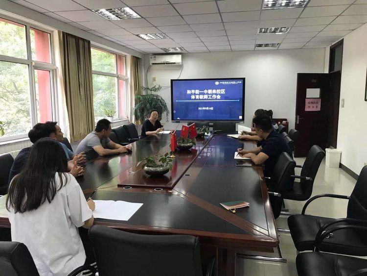 2021年9月10日,在第37个教师节之际,和平街一中朝来校区召开了体育教师工作会,校区主管校长张景鲜、教学副校长邓立、校务办公室主任朱浩、学生发展处主任张东辉以及全体体育教师参加了会议。
