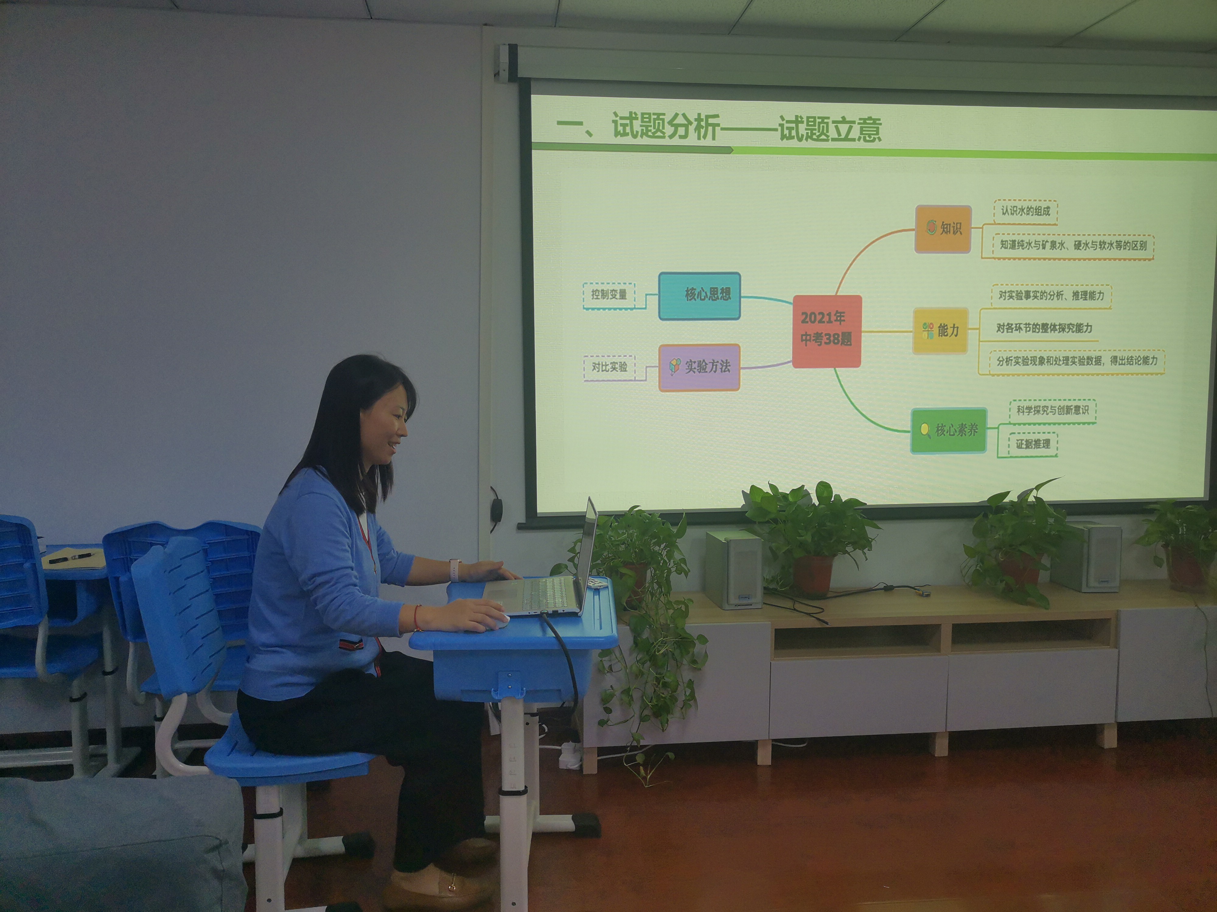 2021年9月23日下午,和平街一中奥运村校区理综组进行第二届“朝阳杯”初中教师基本功初赛选拔活动。组内物理老师赵秋爽、郑磊进行了说课展示,题目分别是《串联和并联》和《声音的特性》;化学老师袁媛进行了解题说题的展示,选择的是《2021北京中考38题-科学探究》,校区主管周建萍副校长和王争主任以及理综组的全体老师参加了活动。