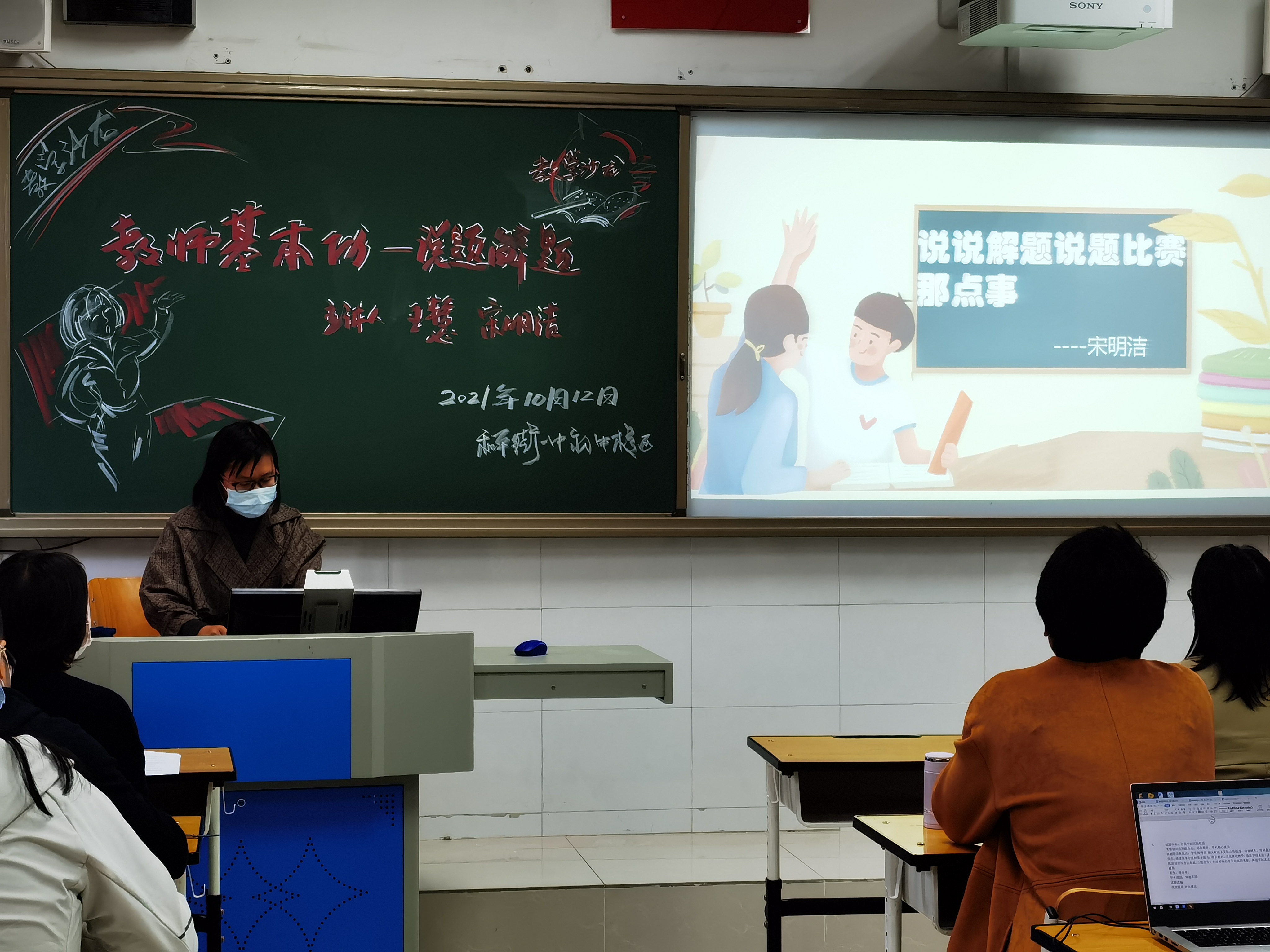 为提升教师教研能力,提高教师教学水平,促进教师专业成长,2021年10月13日和平街第一中学和平街校区初中部在教学楼二层录课教室举办了“教师基本功-解题说题”教学沙龙交流会,会议由教学黄国会主任主持,由首届“朝阳杯”中小学教师基本功展示活动中荣获初中段解题讲题项目一等奖的获得者王慧老师和宋明洁老师主讲。