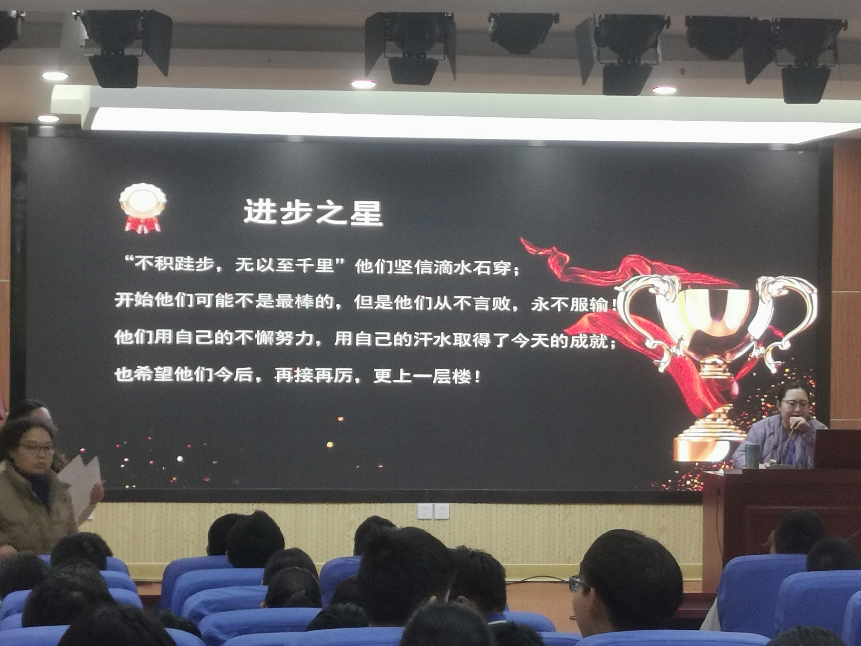第一环节,年级组长夏曼青老师以数据为依据,帮助初三年级学生从不同角度分析了目前的现状,引导学生明确努力的方向;并为期中表现优秀的同学颁发奖状,让学生们热血沸腾,满怀激情,充满自信。第二环节,邀请初三年级进步生代表分享了自己的学习经验。榜样的力量让同学们聚精会神,精神焕发。