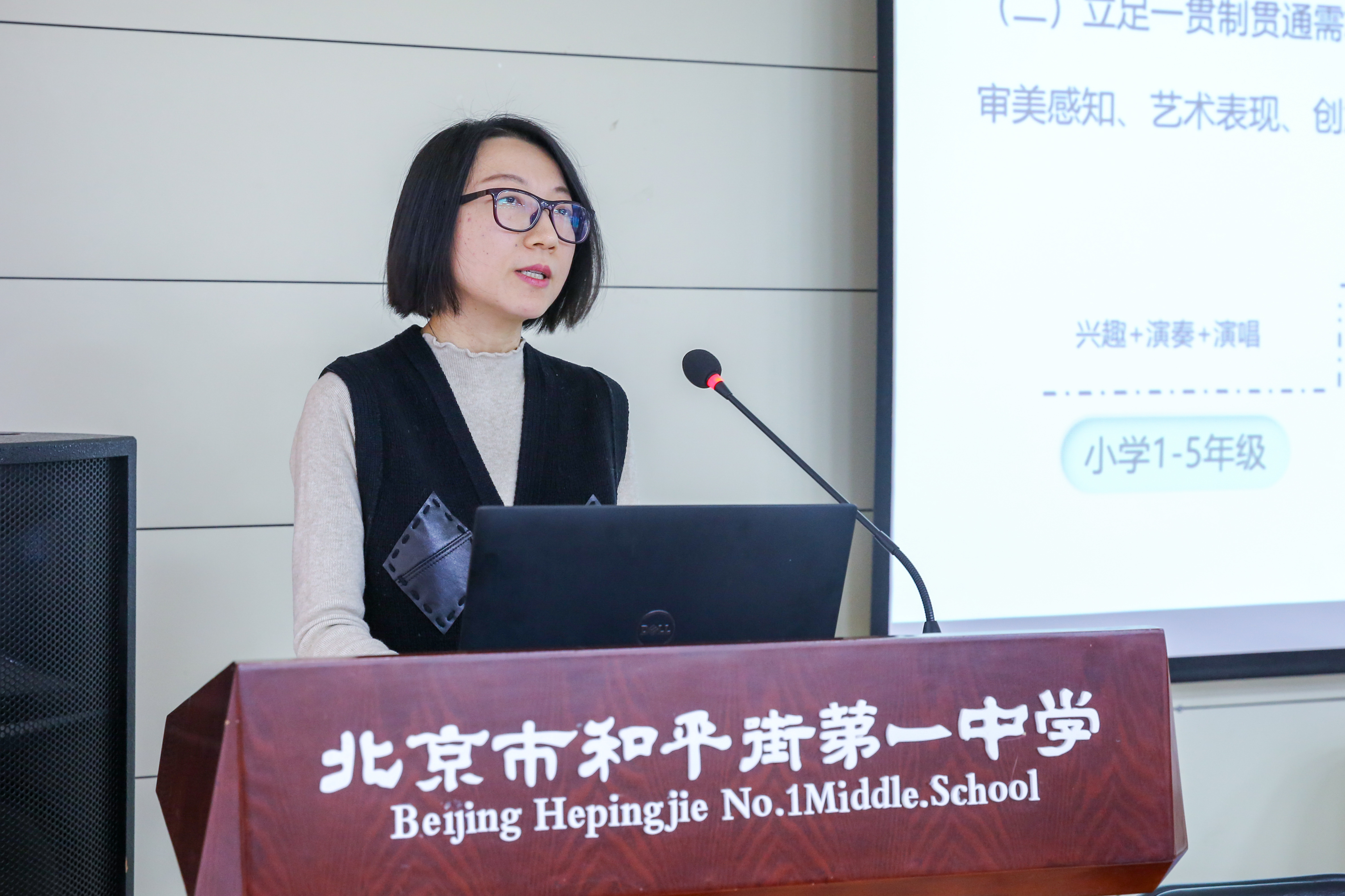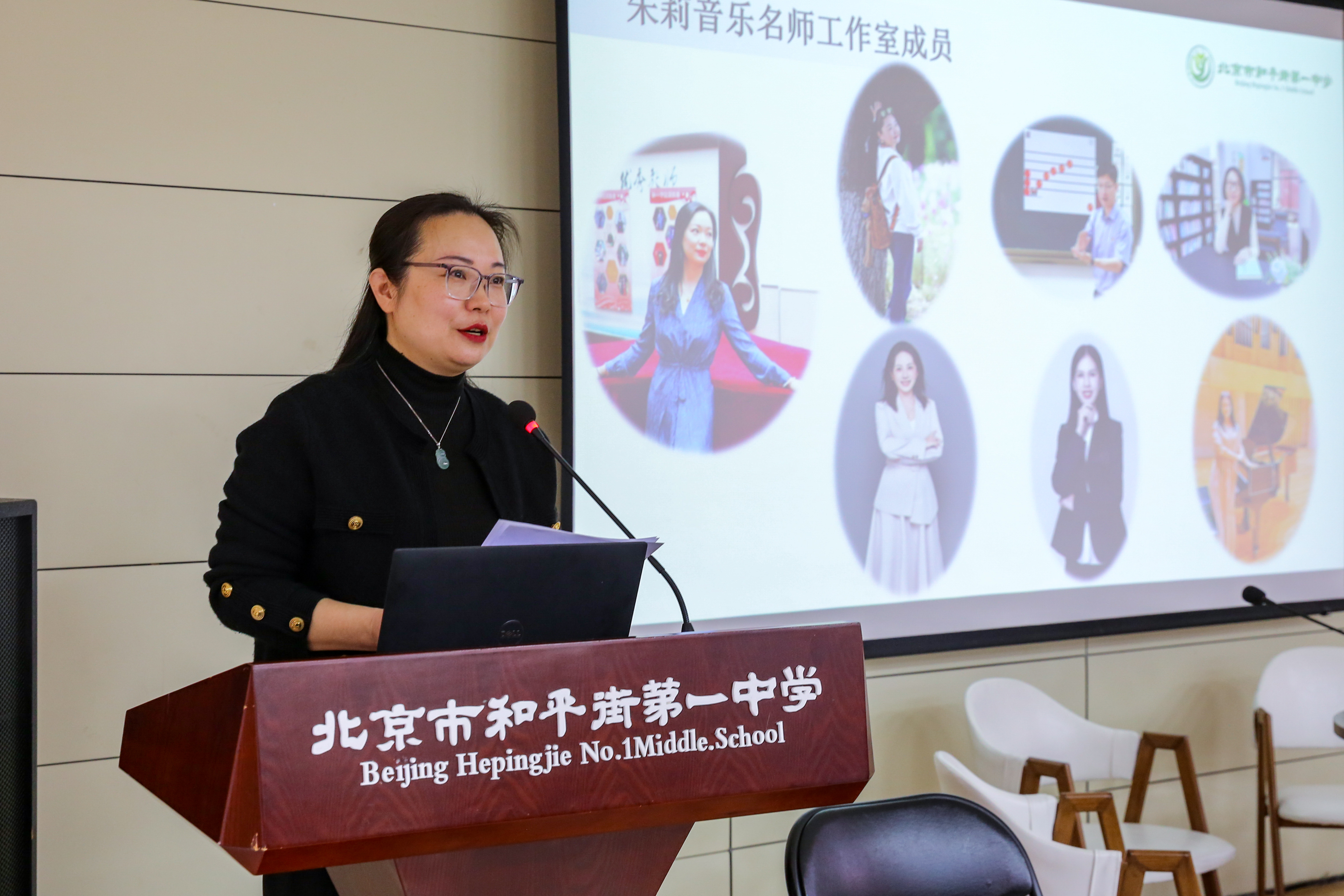 工作室主持人、和平街一中高中音乐教师朱莉回顾自身职业发展与成长经历,向与会老师们阐述了响应学校、朝阳区教委号召成立“音乐学科名师工作室”的初心:积极探索集团化导师带教新样态,打破学段限制,发挥骨干教师的示范引领作用,更精准服务学校服务学生。