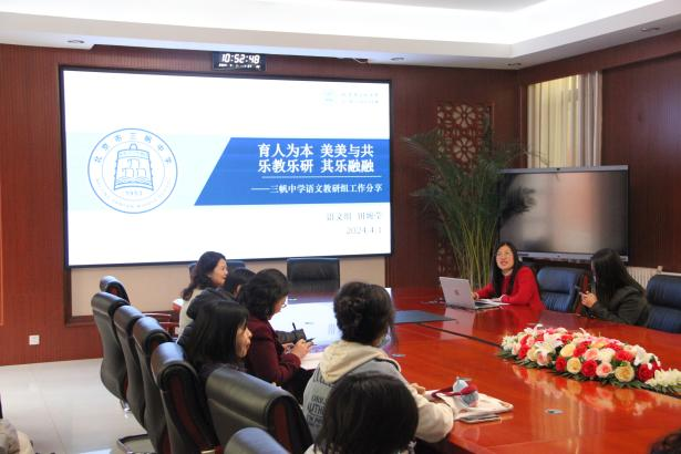 本次研修活动为期一天,上午北京市三帆中学执行校长陈国治对学校办学整体情况进行了介绍。教学副校长邱岚和教学处主任殷寒军紧扣培养学生综合素养和创新能力,分别做《学校课程与教学》《跨学科主题教学,赋能师生成长》主题讲座。随后,老师们参观了学校正在进行的综合课程,深入了解学生跨学科课程学习的具体情况。最后,研修活动还设置了文科、理科小组讨论环节,三帆中学语文教研组长田婉莹和物理教研组长张全贵两位老师就学科建设进行主题报告,教师们围绕教学实践与困惑,进行了深入、有效的研讨交流。