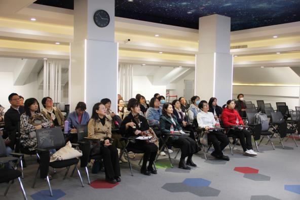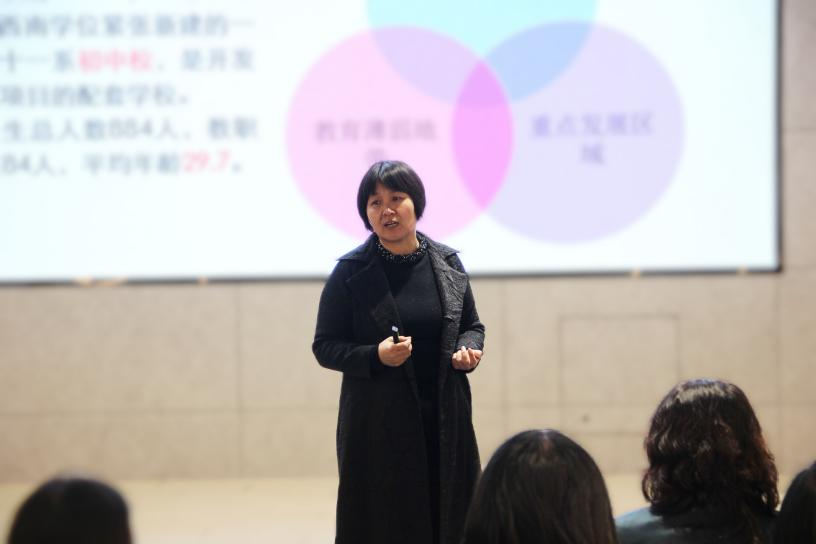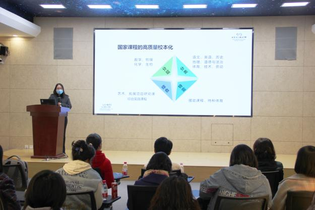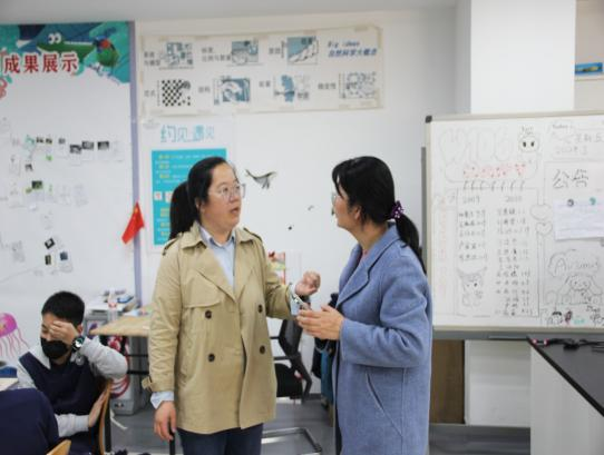 下午,北京市十一晋元中学校长赵凤华围绕以学生为中心的学校治理体系、价值体系以及赋能教师专业发展的支持系统等内容进行了主题讲座。她指出,学校通过激励、发现、增值等制度设计助力教师成为能领导学生学习的教师,每一所家门口的学校要研究“家门口”才有可能成为好学校。学校课程研究院院长张琳珏以及博士尚剑宇做了主题为《学校跨学科学习课程建设的行动与思考》的报告,围绕国家课程、校本课程、课后服务课程的跨学科主题学习实践,通过课程建设、制度保障、激励机制、评价机制、内生动力等以及具体实例分享了十一晋元的具体做法。老师们在杨雄老师的带领下深入了解了学校学习空间设计、跨学科课程建设以及学科教室建设等,对十一晋元中学以实现学生全面、个性发展的课程体系建设留下了深刻的影响。