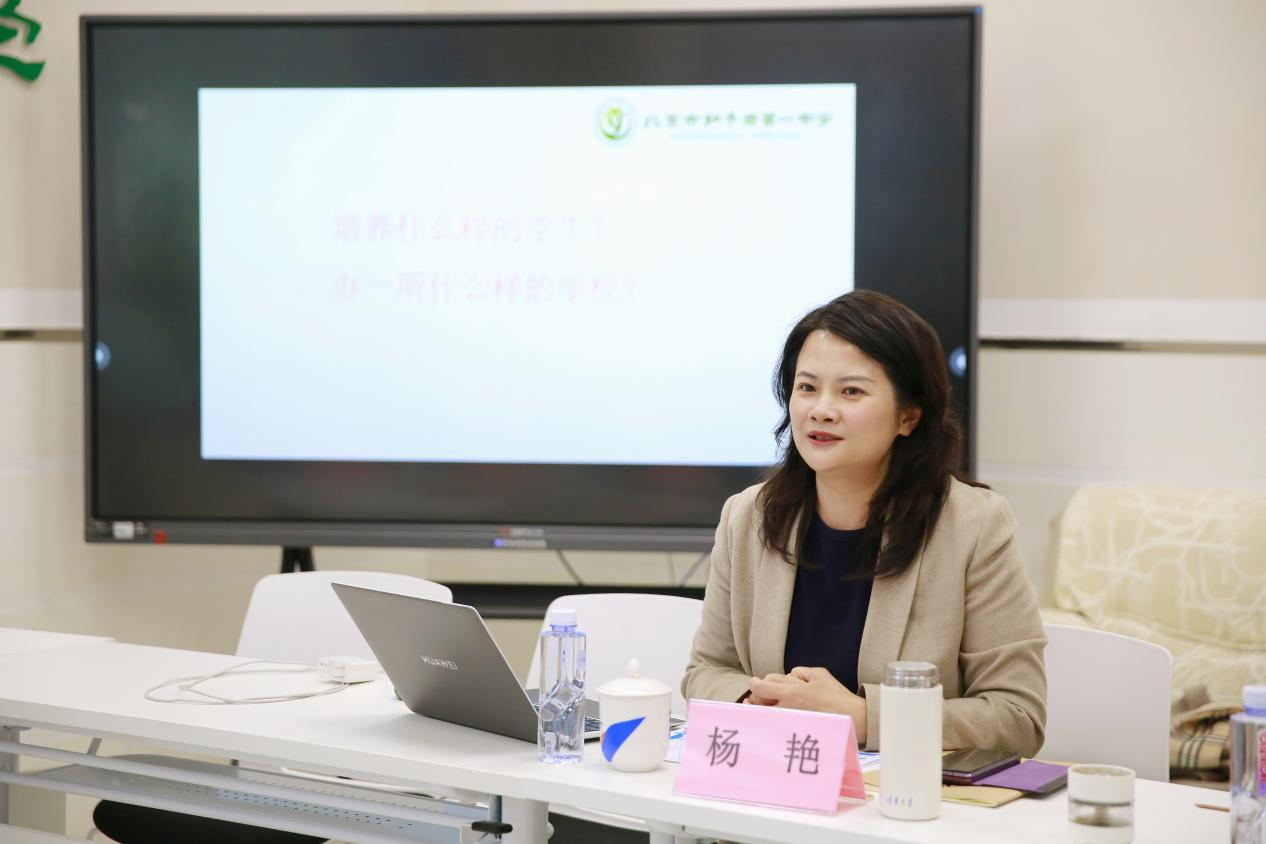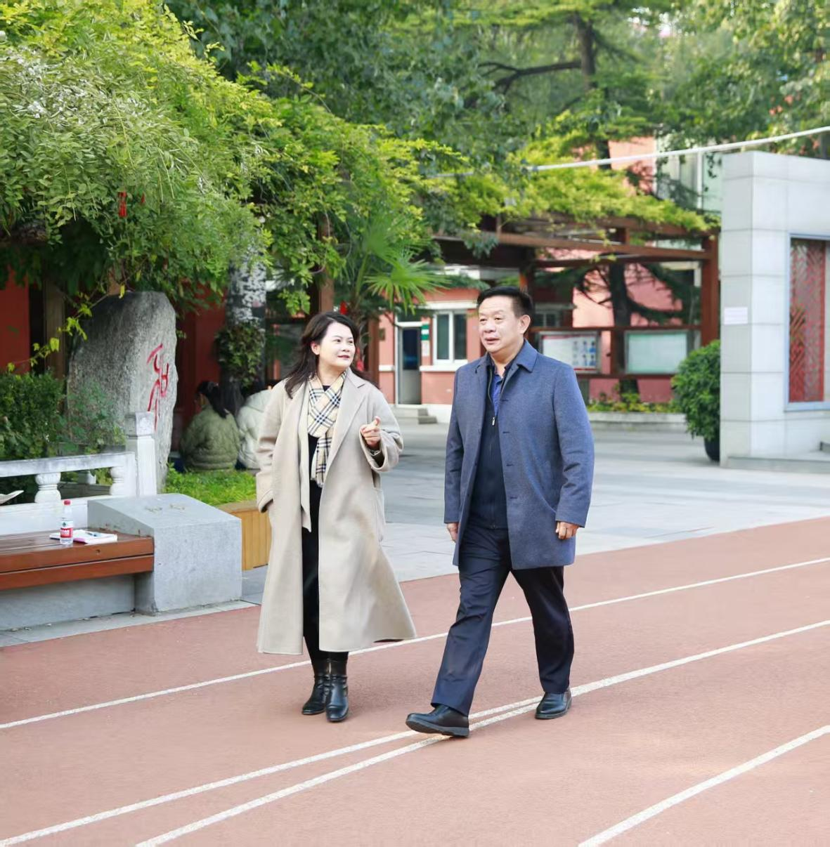 在座谈交流环节,教委领导结合调研提出了发展建议。调研员种凌晨对学校高质量育人效果、扎实的办学实践给予充分肯定,对人才队伍建设提出建议。杨碧君院长高度肯定了学校在中高考中持续取得的优异成绩,对学校基于目标导向、问题解决的系统性办学改革举措提出赞扬,并希望拔尖创新人才的持续涌现。何晓华主任强调,和平街一中教育集团的发展深受两委领导高度关注,充分肯定了学校领导班子对文化的传承和发展以及改革创新、落地见效,希望学校作为朝阳老牌名校持续高位发展。