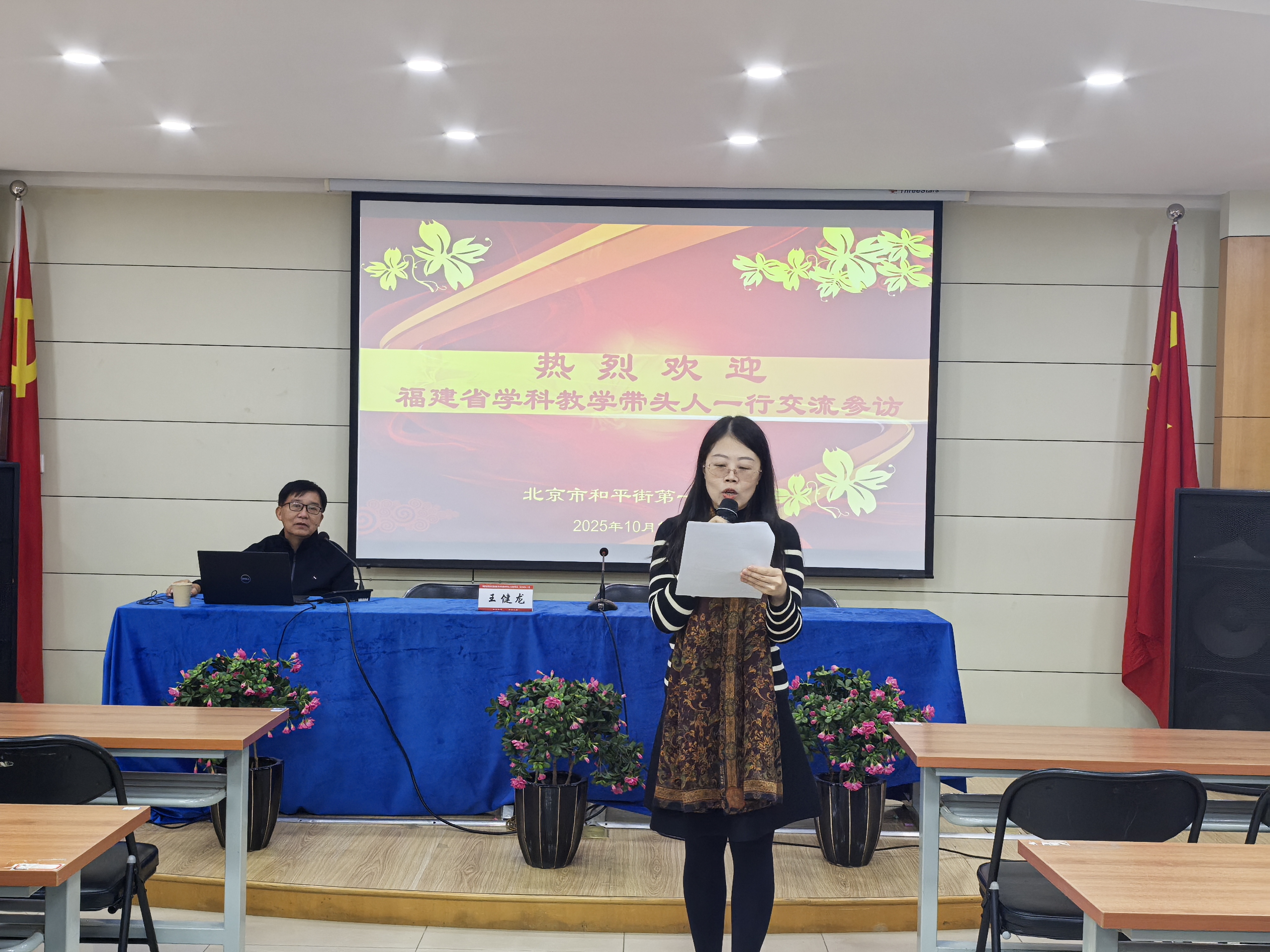2025年10月16日上午,北京市和平街第一中学莲葩园校区迎来了一批远道而来的教育同仁。福建省新时代基础教育学科教学带头人培养研修班一行50余人到校开展参访交流活动,共话教育理念,共促专业成长。