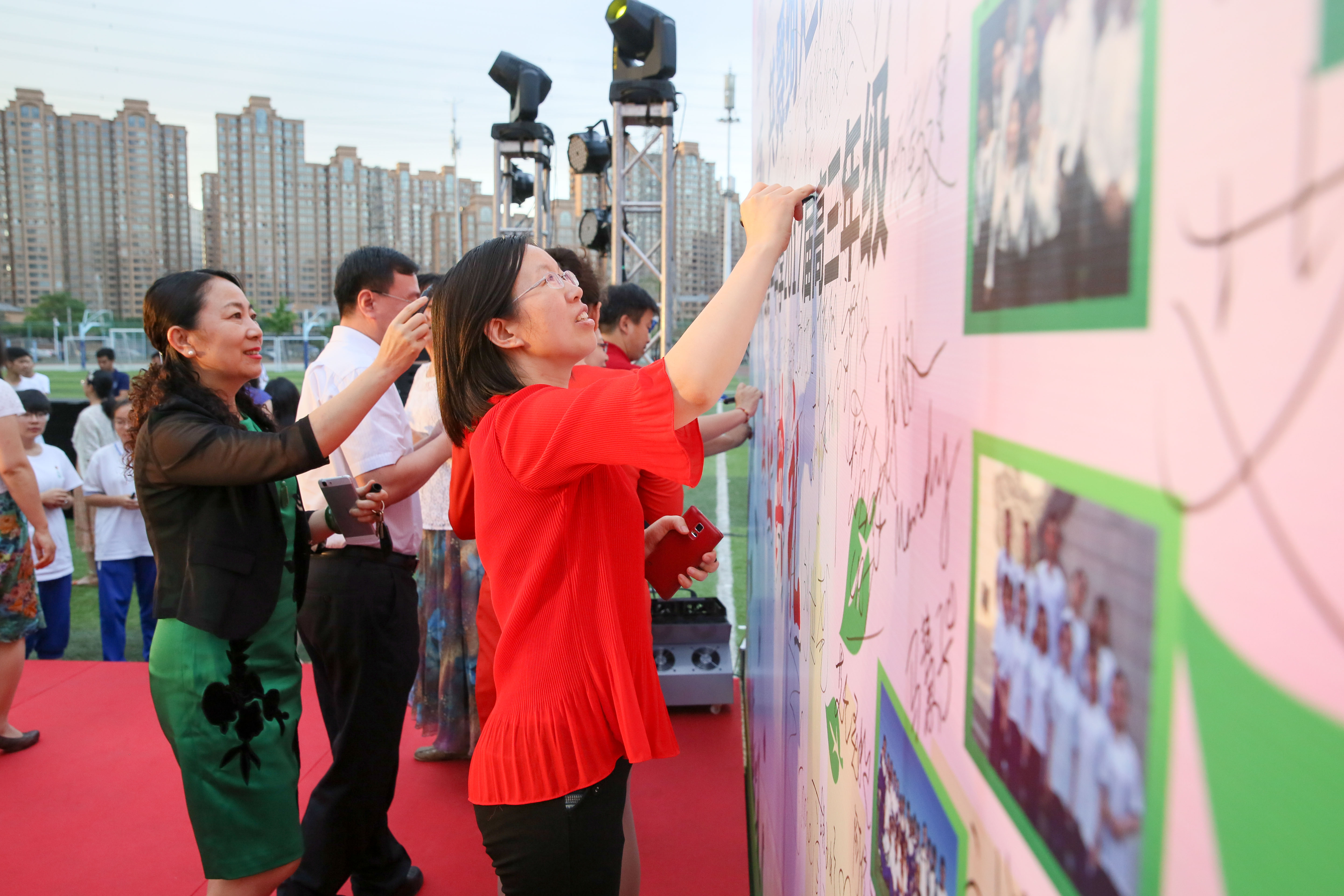 伴随着一首首温暖的歌曲,高三毕业生踏着矫健活力的步伐走上红地毯,在毕业墙上签上祝福,合影留念。