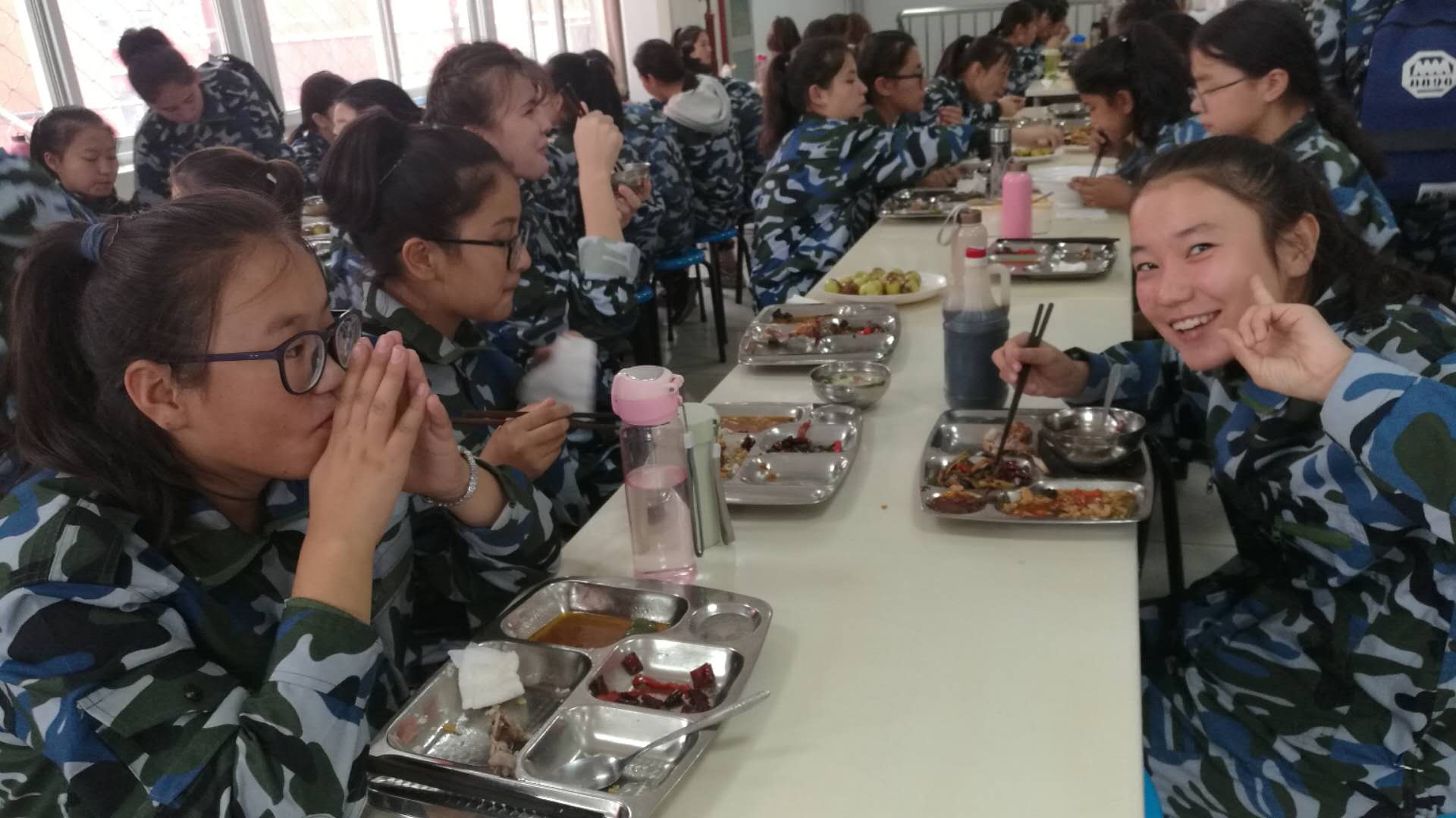 训练场上,同学们训练的身影成为一道靓丽的风景线:烈日下,昂首站军姿;稍息动作,出脚快速而整齐;齐步走,整齐划一;踢正步,步伐标准有力量;唱军歌,斗志昂扬;叠军被,技艺精湛;联欢表演,多才多艺;军体拳,一拳震出天高远;三声三相,言行举止、文明礼貌。苦过,痛过,哭过,笑过,内容丰富、要求严格的训练养成让同学们不断蜕变成长。集体生活更让同学们学会了独立,懂得了包容和分享。