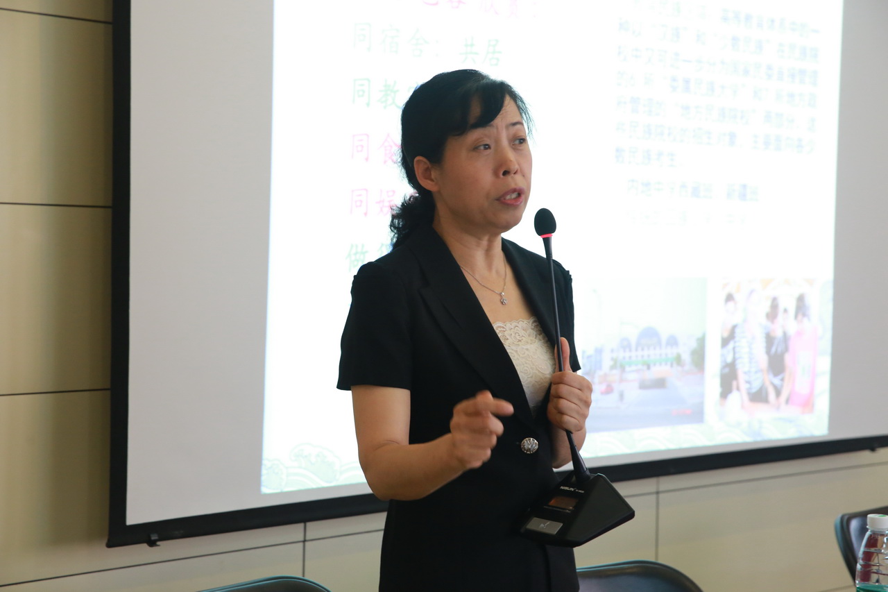 会上,大家首先认真听取了由中央社会主义学院民族与宗教教研室主任、教育部民族教育专家委员会成员沈桂萍教授做的《民族团结与校园文化建设》讲座。沈教授深入浅出的讲清了“如何在校园文化建设中更好的继承发扬中华民族的优秀传统文化”、“如何妥善把握宗教与民俗的联系”;帮助老师们正本清源重新认识了工作生活中容易出错的有关民族团结教育方面的常识;总结出“交往、交流、交融”是学校开展民族团结教育的主线,筑牢“中华民族共同体意识”是我们开展民族团结教育的根本目标。