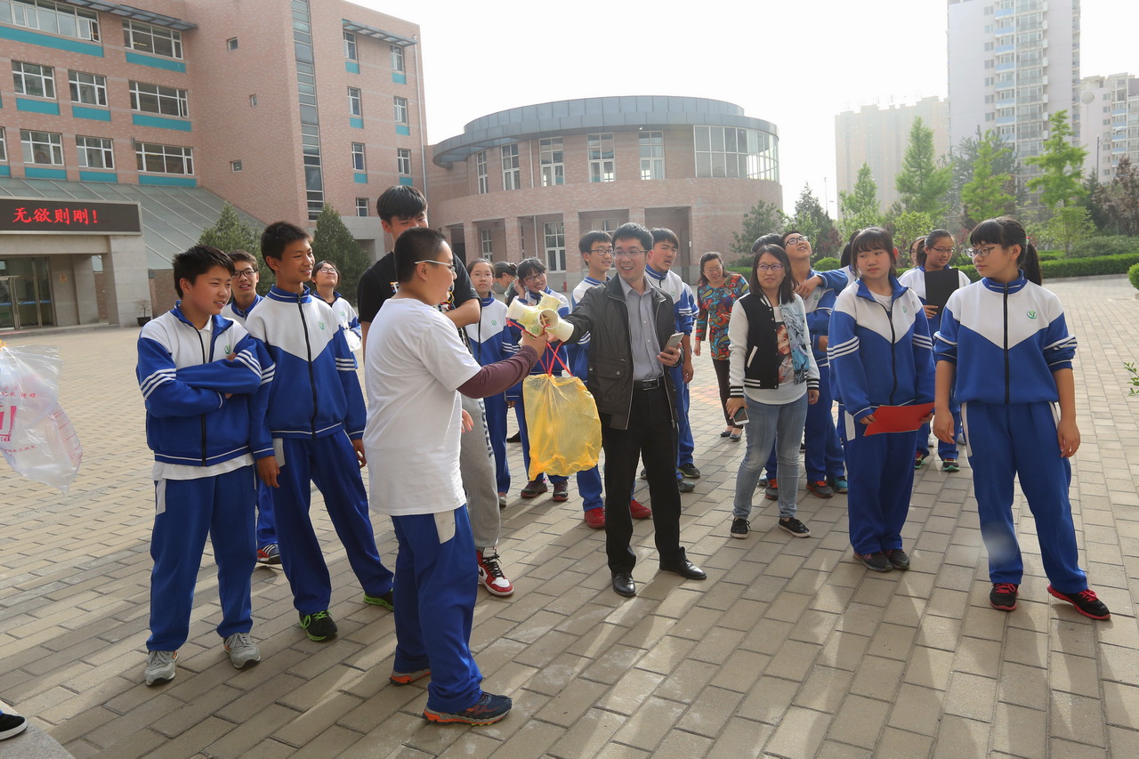 本次科技运动会设置了“高空定点落蛋”、“瓶子下山”、“纸飞机航空”和“火柴棍大力士”四个项目。学生利用课上学习到的物理知识制作作品参赛,学生的参与热情高涨,每一项目的比赛均有40余人参与。
