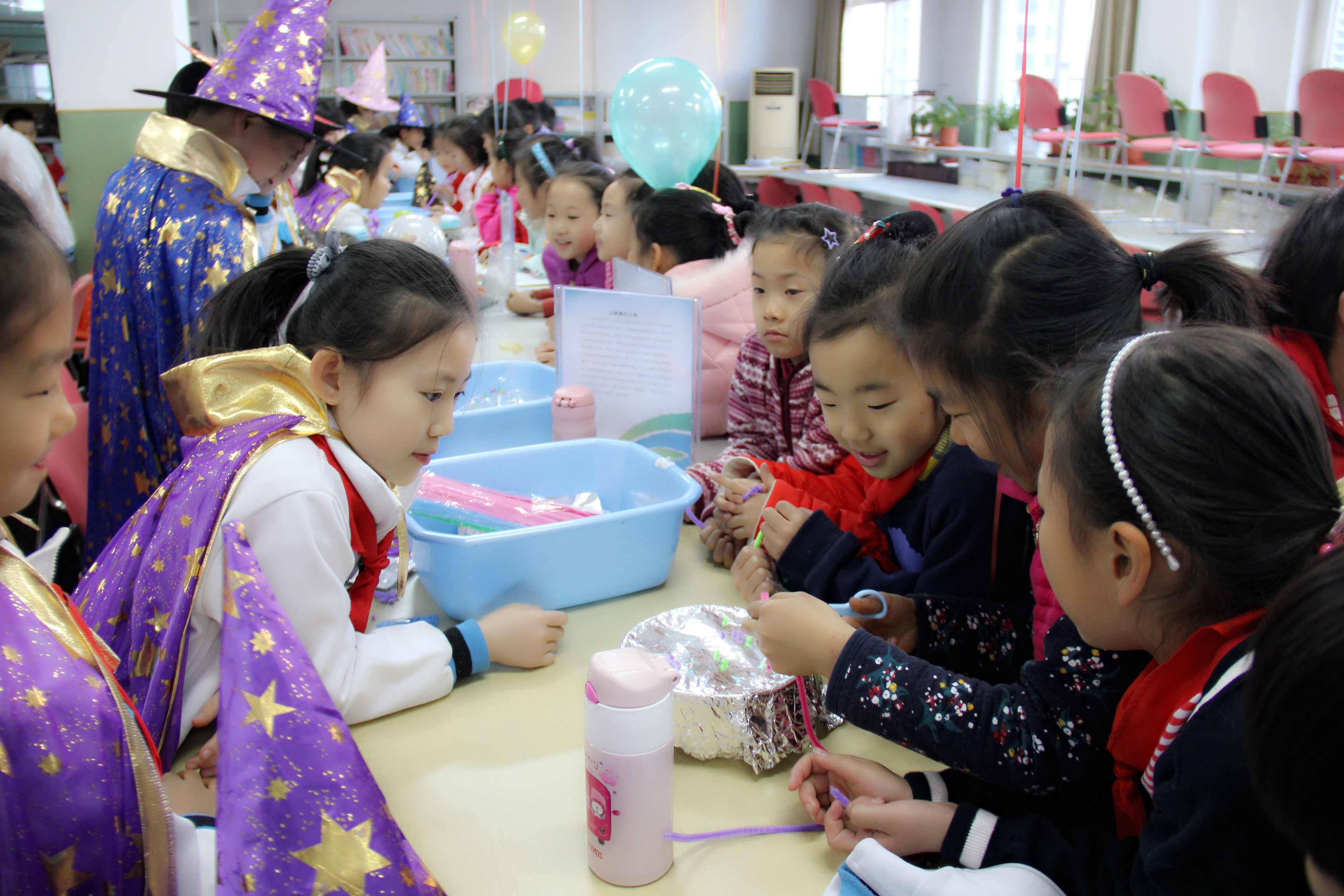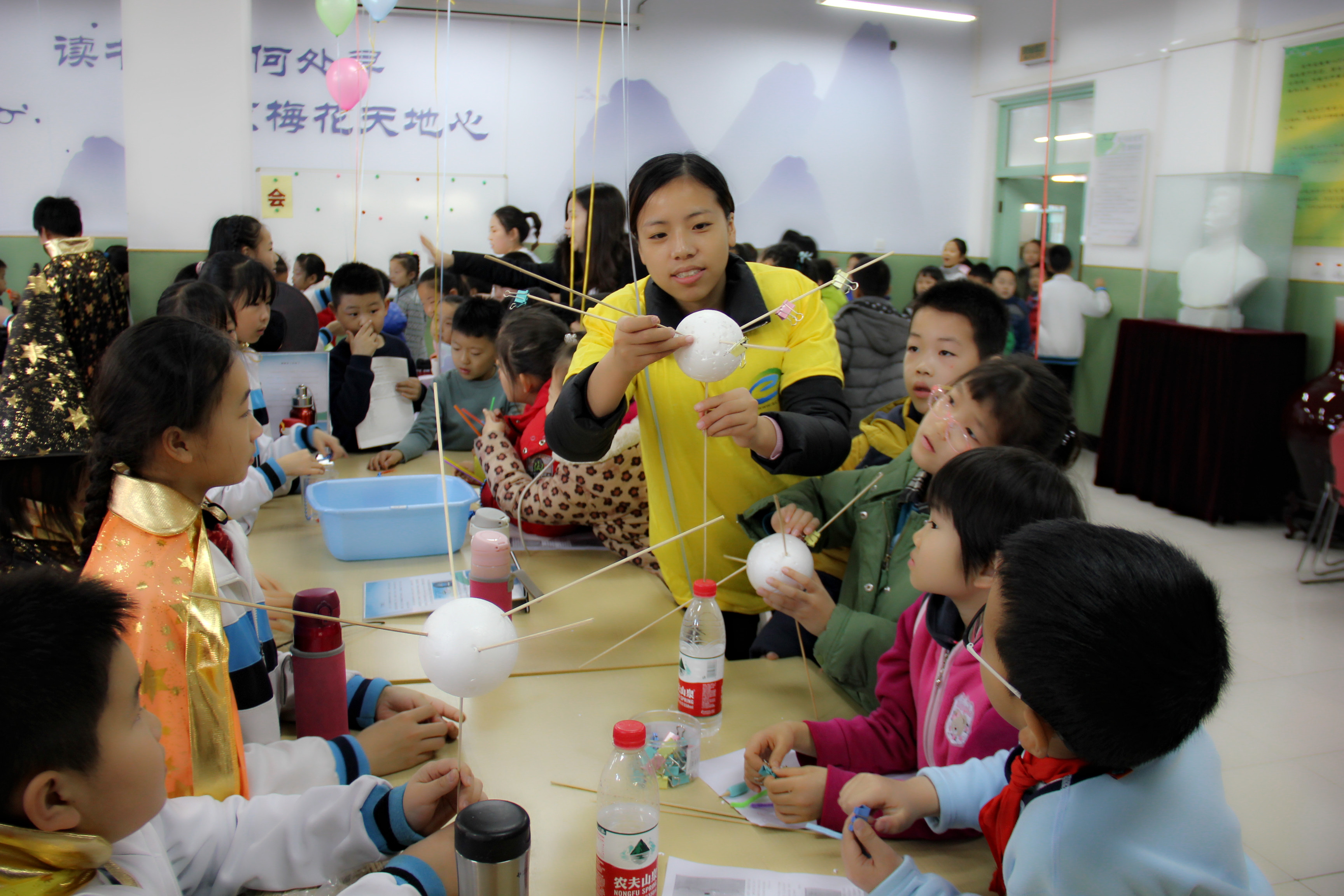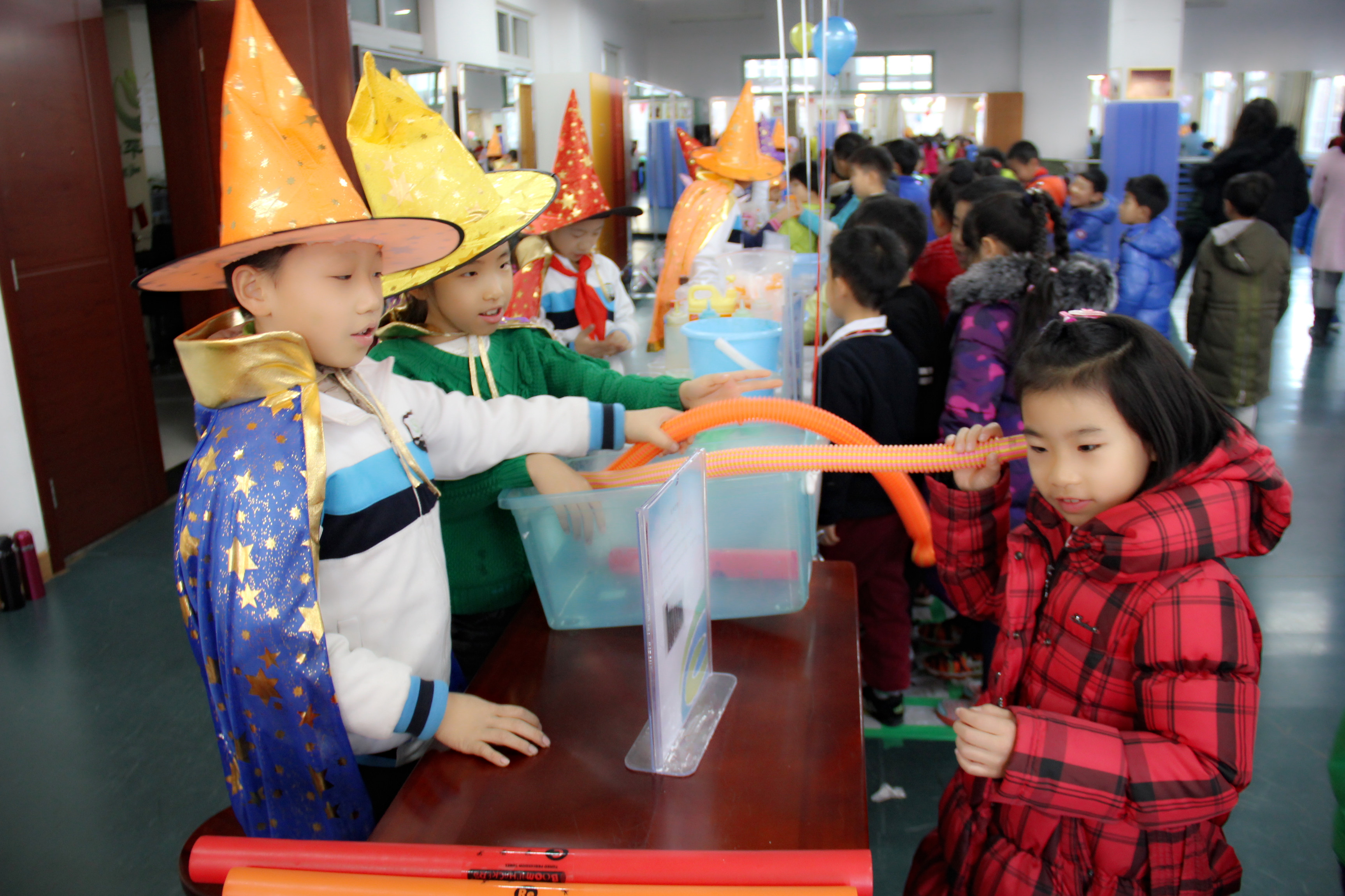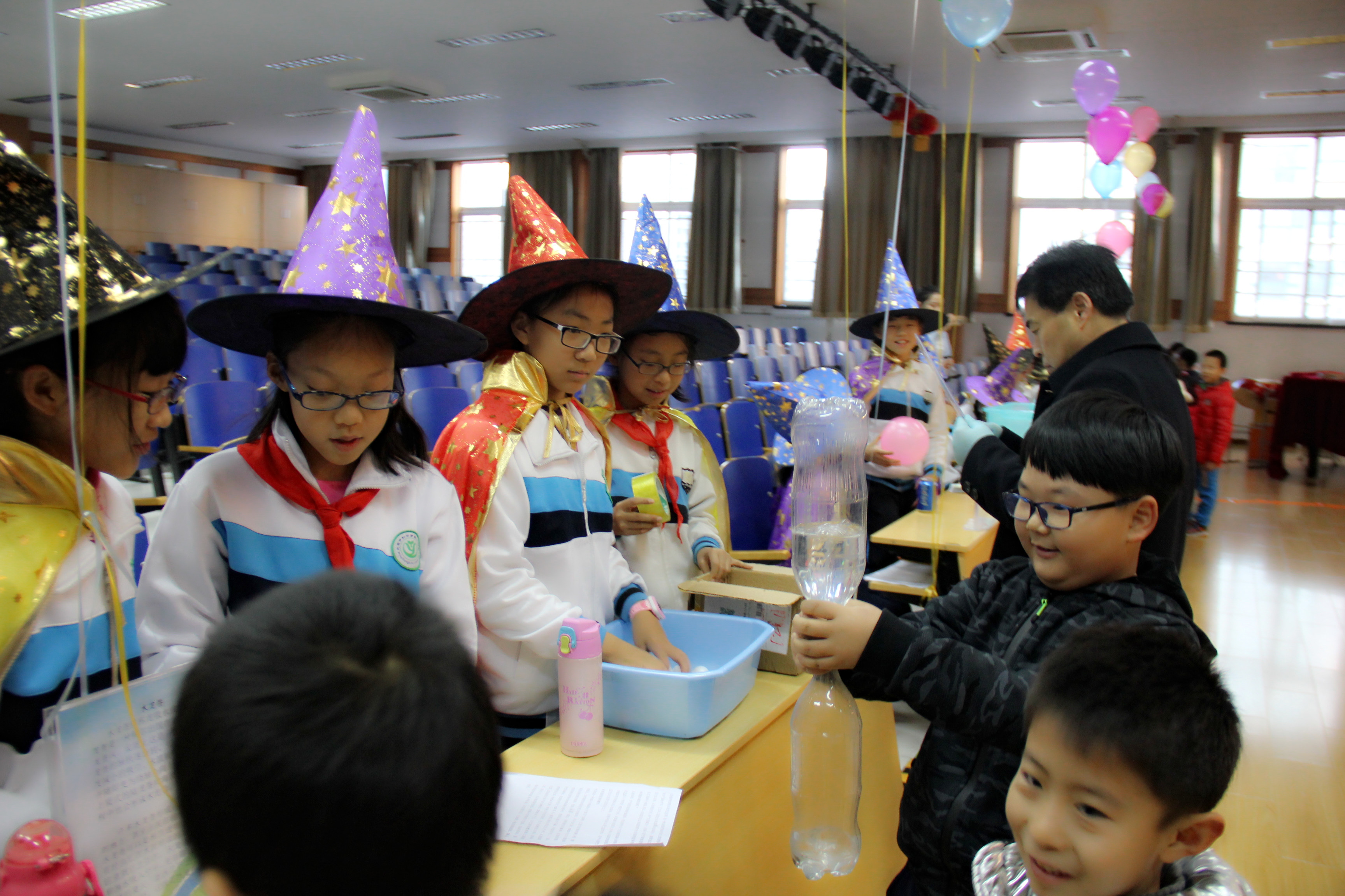 在三个活动场地,孩子们亲身体验了神奇的透明片、万花筒、看见光谱、 美丽的光纤、视觉维度、自制飞行器、会唱歌的气球、星球大战等近五十个项目。同学们兴致勃勃地参与和体验各项有趣的科学实践活动,大开眼界,收获颇丰!