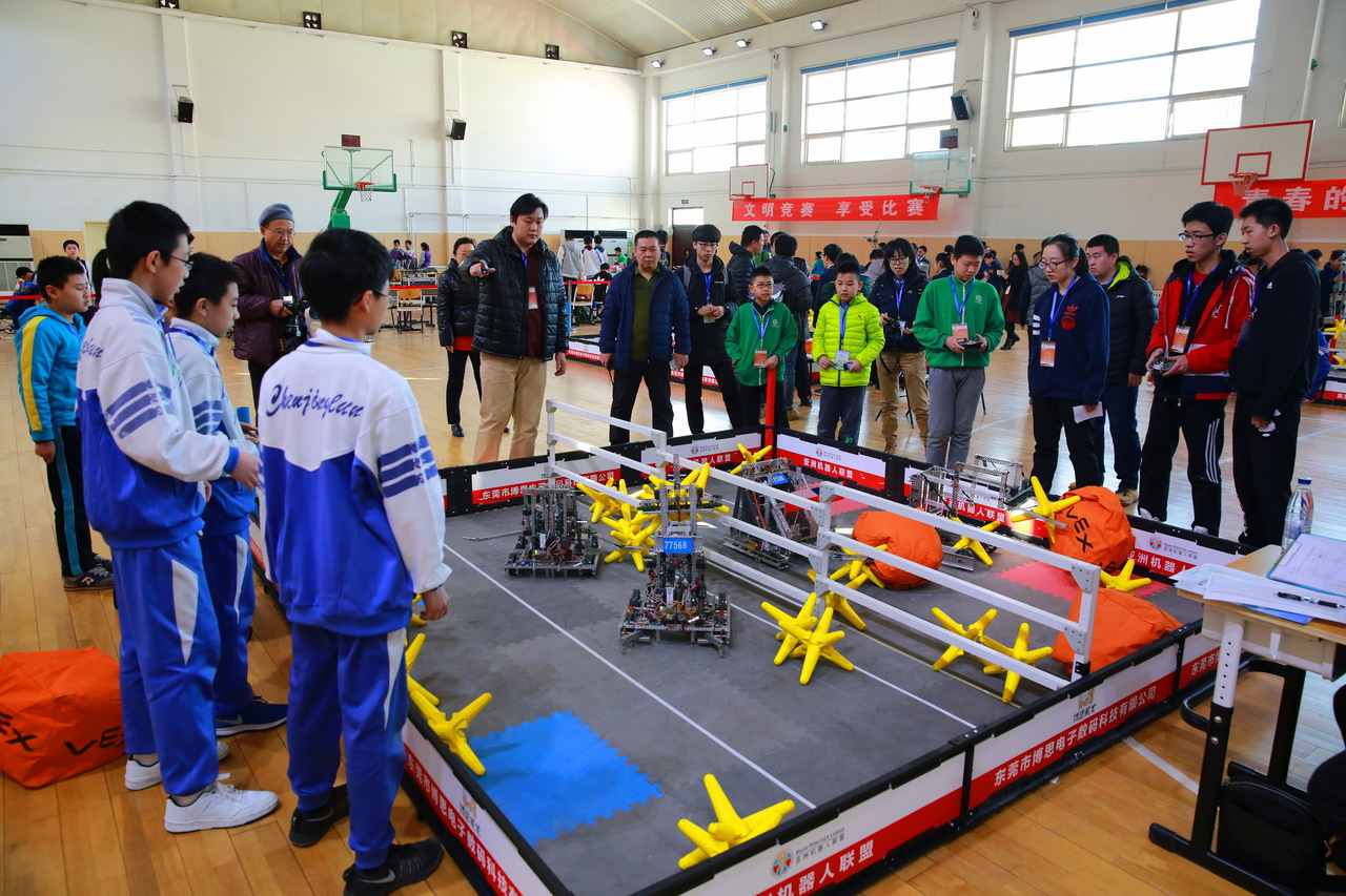 同时,学校派出近60名学生参加了综合技能、FLL、ASC、WER和VEX等项目比赛。经过激烈角逐,最终学生斩获综合技能高中组、FLL项目高中组、ASC和WER项目初高中组晋级资格。这些学生将代表朝阳区参加3月17-19日在房山举办的“第17届北京市青少年机器人竞赛”。