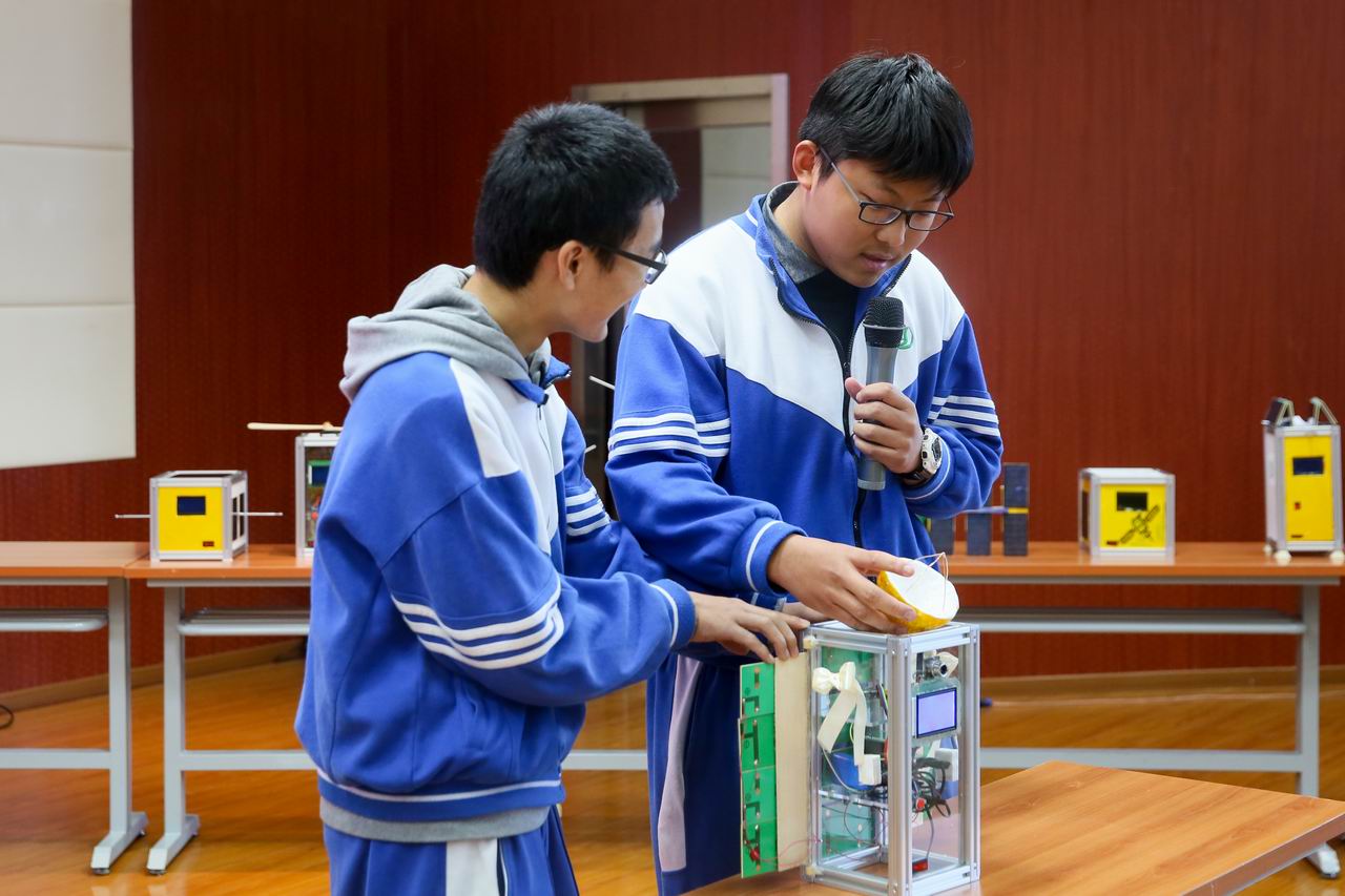本次社团成果展示共有44个小组参加,采用随机抽签,小组展示的方式,各小组围绕“工程、化学、生物、卫星设计与应用”四大类科技课程进行展示,现场观众可以为自己喜爱的小组投票。