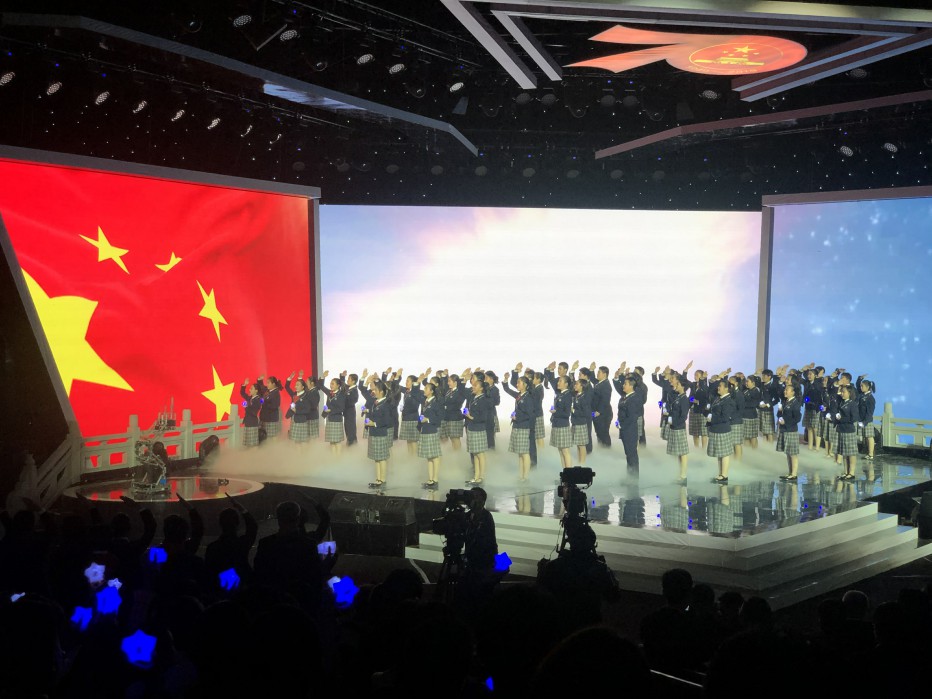 为响应“科技盛典”活动以“服务创新人才、展示人物风采、弘扬科学精神、传承创新理念”的主旨,和平街初中校区的的合唱团员、科技社团团员参与创编的音乐短剧《夜空中最闪亮的星》作为活动第一个节目,引爆全场,点燃了整个会场嘉宾和观众的热情,得到了活动现场总导演的肯定!科技社团的学生们经过自己编稿、修改,圆满完成了此次大型活动表演“首秀”,将我校科技特色带上舞台;合唱团成员们,除了完成好合唱《夜空中最亮的星》,更是展现了和一的良好传统及精神风貌,台下全场观众随着旋律互动,场面很是震撼!