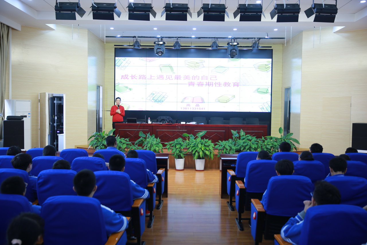 为进一步加强对学生的青春期健康教育,增进学生的健康意识和自我保护能力,引导学生科学面对青春期身心的各种变化,树立积极合理的异性交往观念,让学生平稳顺利度过青春期,2018年4月17日下午,和平街一中和平街校区邀请中国人口宣传教育中心健康科普青年讲师团讲师高晶老师前来为初二年级学生开展青春期健康教育讲座。