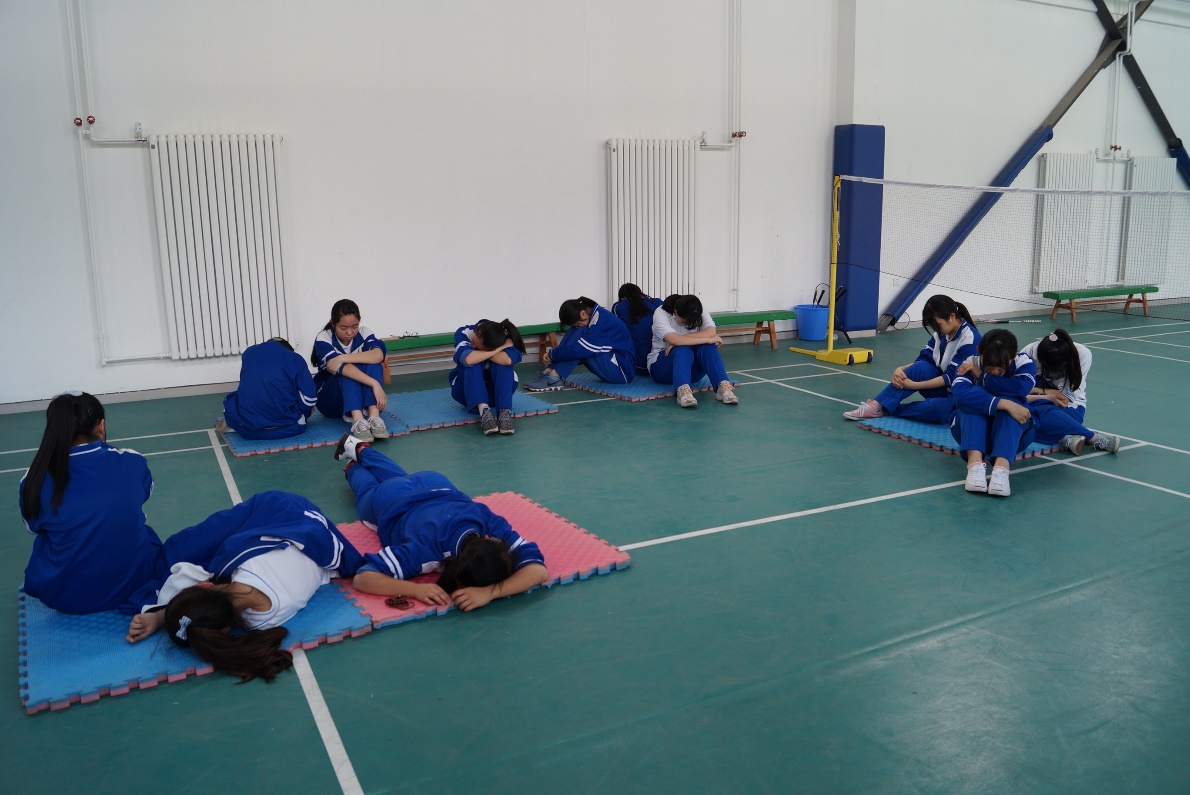 本次团体辅导活动由心理教师谢维组织开展。活动内容包括热身活动:抓与逃;主题活动:坐地起身;结束活动:积极想象。抓与逃活动旨在让学生了解考前紧张并不是那么可怕,适度的紧张可以提升专注度。坐地起身则是让孩子们意识到面对高考他们永不独行,同学、家长和老师都会成为他们坚实的后盾。最后,团体活动以积极想象作为结束活动,在脑海中进行了一次高考的预演。学生们闭上眼睛,以自己最舒服的姿势,跟随着舒缓的音乐和缓慢的指导语,想象从高考前一天到第一科考试结束的整个过程。教师针对学生可能会出现的各种情况,进行积极的引导。