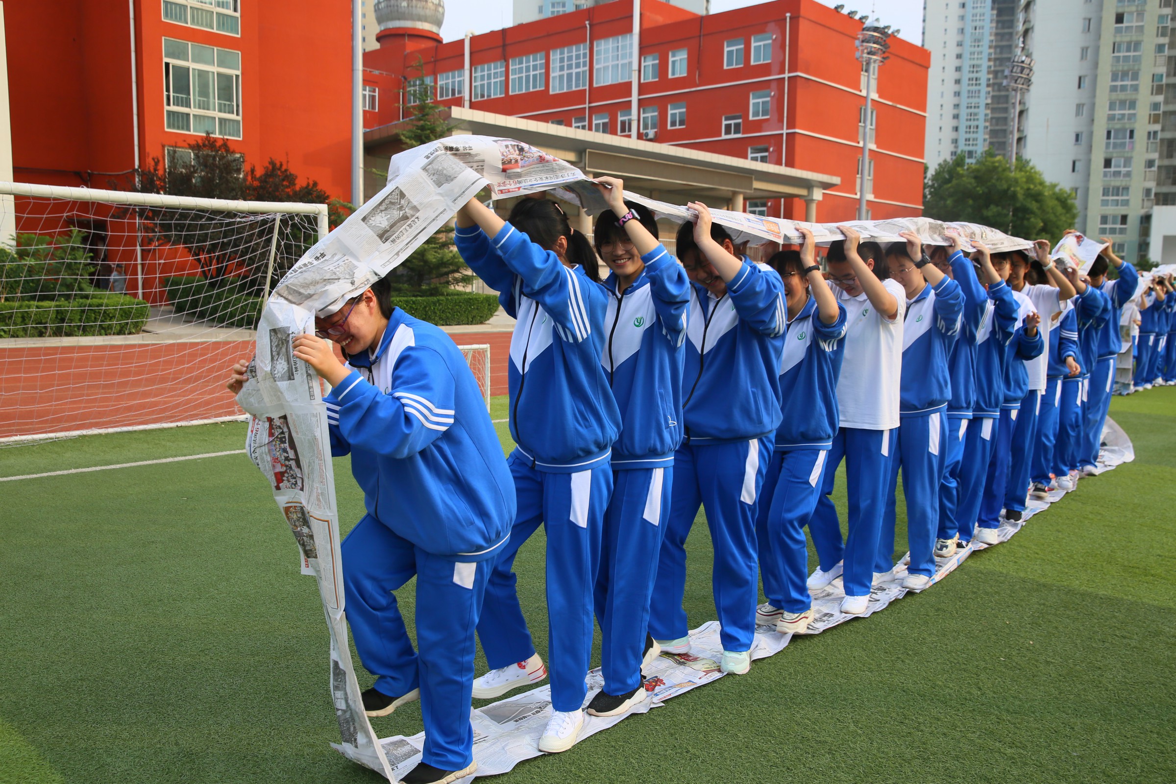 为打破班级壁垒,将学生打乱进行分组。各临时小组简单的进行了成员介绍,加深了解的同时也有助于各班级同学之间的情感和思想交流。紧接着各组开展团体辅导活动,要求每队将报纸围成一个可以行进的履带式环,本组全部成员在规程要求下走完全部路程。活动中同学们协作、交流,展现出了新高一年级良好的精神风貌。活动结束后,同学们还进行了心得分享。
