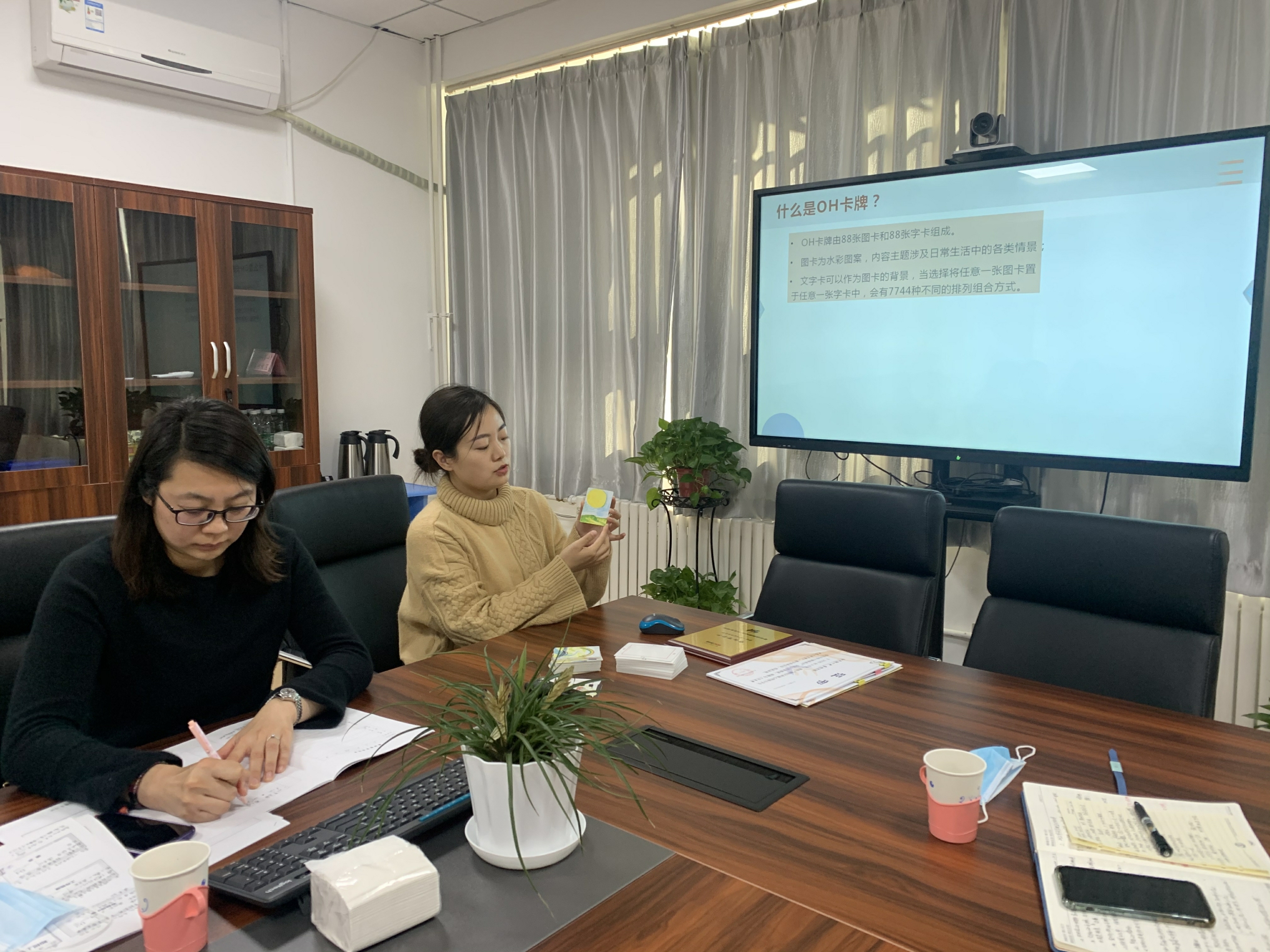 本次活动共分为以下几部分:第一部分由莲葩园校区谢维老师和奥运村校区张妮老师带领我们一起学习咨询理论,提升个体咨询技能。歌德曾说过:“看一本好书,如同跟一位高尚的人交谈。”作为心理老师,坚持读书有助于我们不断吸收理论知识,提高个人专业化成长速度,而读书分享可以促进我们整理思绪,分享见解,进一步反思,进而加以创新,更好地助人自助。谢维老师对分享的书籍进行了用心的解读,所悟所思深深地吸引并打动了每一位小伙伴。读书沙龙结束后,一句“欢迎来到图卡世界”瞬间把我们带入张妮老师主讲的“一卡一世界——OH卡在心理工作中的应用”。两位老师的分享让我们从彼此的感悟中得到借鉴,看到自身需要提升的方面和未来努力的方向,为今后心理健康教育工作与个人专业化成长开拓了思路。
