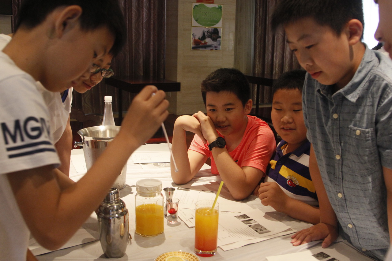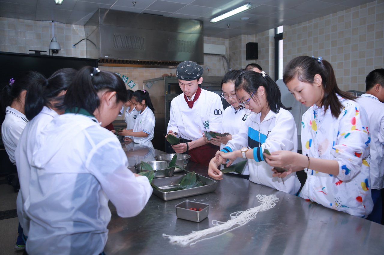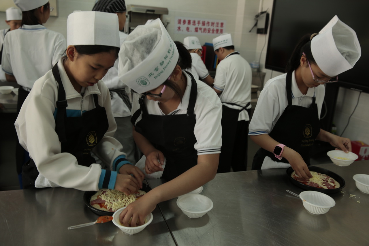 六年级的学生根据自己的兴趣选择了咖啡、调酒师、西式烹调师(披萨、英式美食)、养生保健师、中式烹饪师等课程进行体验。活动中,同学们学习了咖啡文化,了解咖啡的种类;以小组互助形式亲手制作PIZZA,感受“自己动手丰衣足食”的乐趣;通过学习“中医养生保健”,了解缓解头部疲劳的方法。