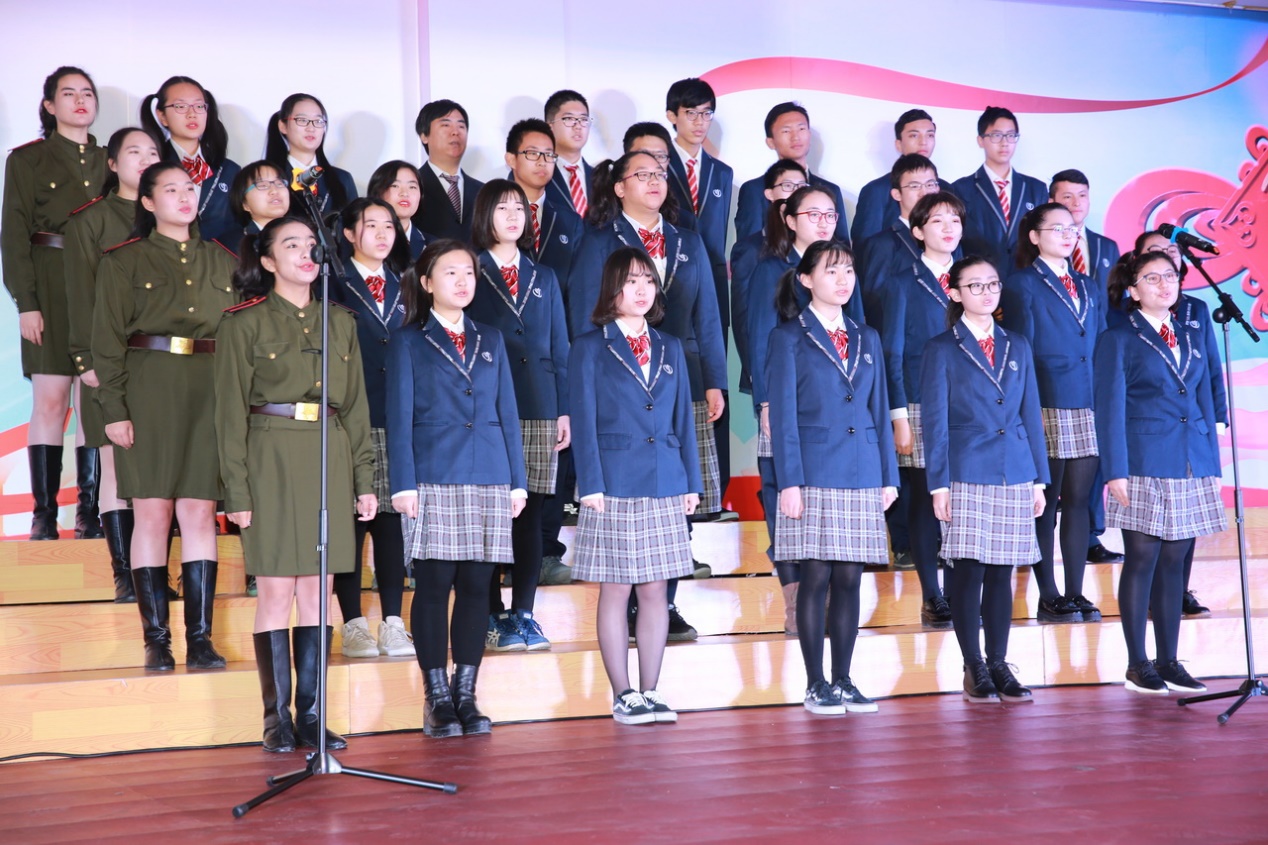 全校学生以班级为单位,经过精心准备,用饱满的精神和万分的热情全身心地投入到演出之中。除了演唱学校校歌之外,各班还精心挑选曲目,搭配服装。活动中,学生演唱的有《游击队之歌》、《毛委员和我们在一起》、《黄河大合唱》、《红星歌》、《歌唱祖国》等一首首耳熟能详的颂党颂祖国歌曲,重温了党带领全国各族人民奋力夺取革命胜利的光辉历史,雄浑嘹亮的歌声唱出了同学们的民族情怀与爱国情怀;还有《大梦想家》、《真心英雄》、《贝加尔湖畔》、《大鱼》、《青春修炼手册》、《阳光总在风雨后》、《逆战》、《最美的太阳》等当代脍炙人口的流行曲目;学生还自创歌曲《高一五班的日子》等等。整场展演活动形式多样,精彩纷呈。清友园校区的节目除了合唱,还加入了舞蹈、相声、器乐演奏、小品等节目。活动现场气氛热烈,同学们热情高涨、倾情演艺,会场中不时响起阵阵掌声,台上台下都沉浸在节日的喜悦中。