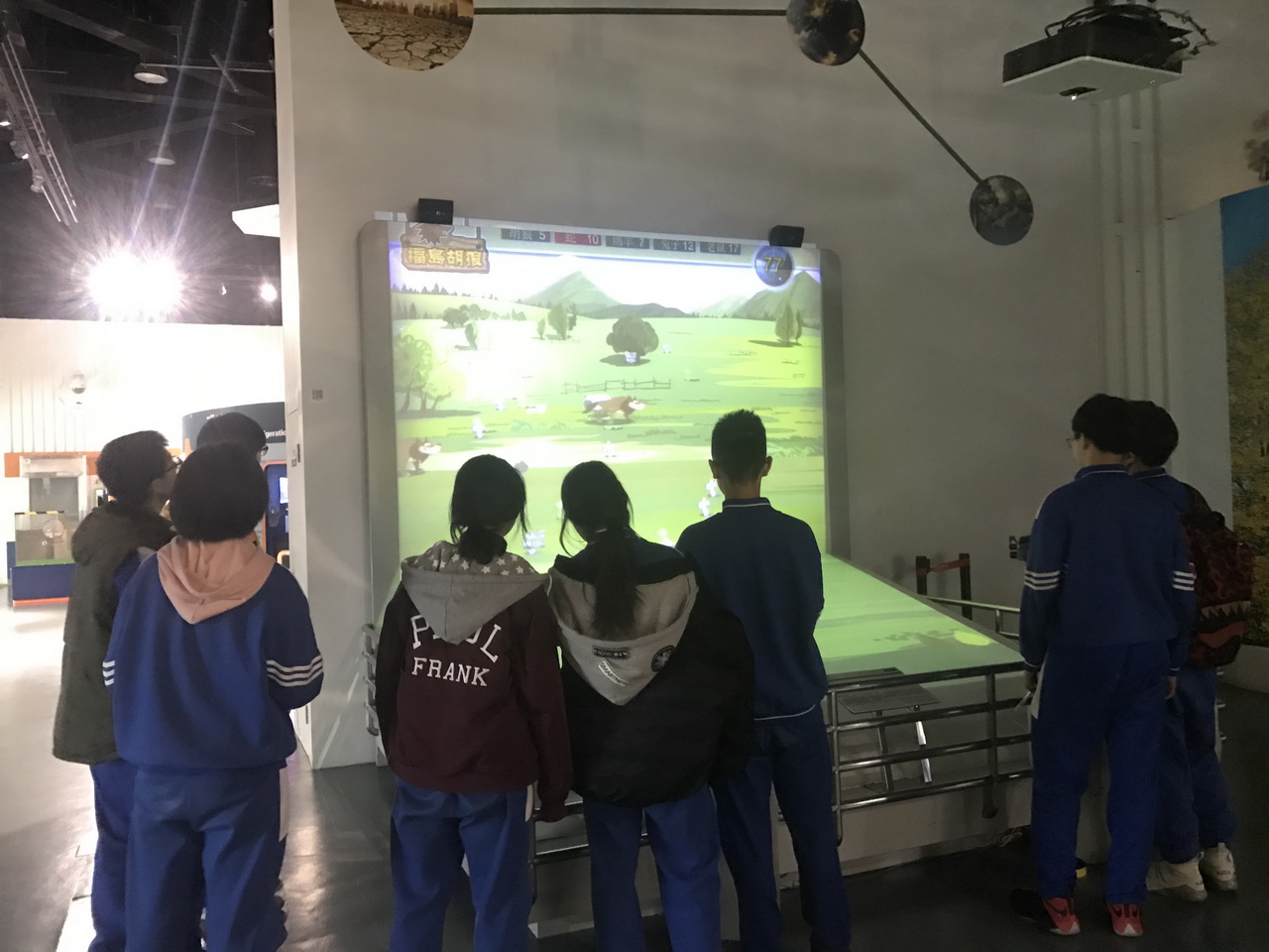 科技馆内 “华夏之光”、“探索与发现”、“科技与生活”、和“挑战与未来”等展厅中展示了有关化学、电磁、光学、力学、天文学、数学、声学、生命科学等领域的探索过程及取得的重大成果。丰富多彩的展示项目让同学们大开眼界。同学们有序参观,认真完成任务单,积极投入地体验着每一项科技运用的成果,努力学习着改变生活的各项科技成果的相关原理与知识。