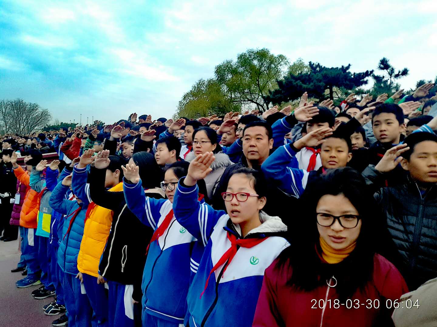为深入贯彻落实《北京市中小学培育和践行社会主义核心价值观实施意见》文件精神,践行北京市中小学生“四个一”活动,按照市、区教委统一部署,2018年3月30日,和平街一中朝来校区组织初一年级学生参加了天安门广场升旗仪式。