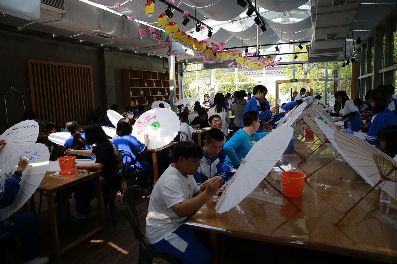 师生们行走在西湖边,欣赏着优美的江南胜景,领略着西湖纵连古今沧海桑田的变化和改革开放新时代的新面貌;在岳王庙聆听民族英雄岳飞的故事,感受精忠报国的民族精神,心中崇敬之情油然而生;徜徉在水草丰茂的西溪湿地,体会着江南水乡悠远的历史文化和丰饶的自然资源;在杭州中国扇博物馆体验油纸伞伞面作画,发工艺审美之意趣,感工匠精神之意蕴,呈想象之才,展个性之态。