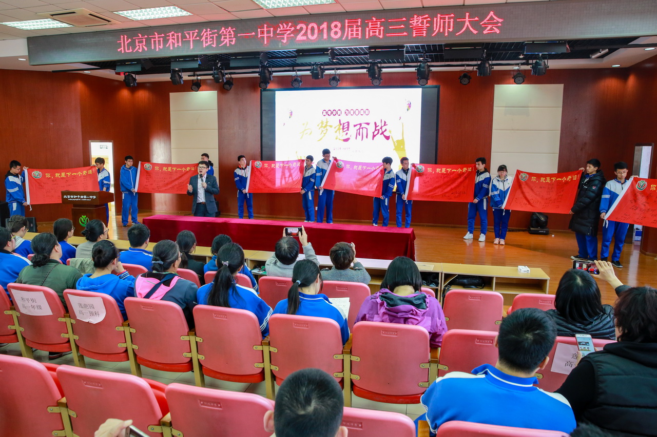 厉兵秣马,六月出征。为激发学校高三全体师生的昂扬斗志和必胜信念,2018年4月8日,和平街一中隆重举行2018届高三誓师大会。周建萍副校长、学校全体中层干部、学生发展处老师、高三全体教师、全体学生及家长参加了誓师大会。