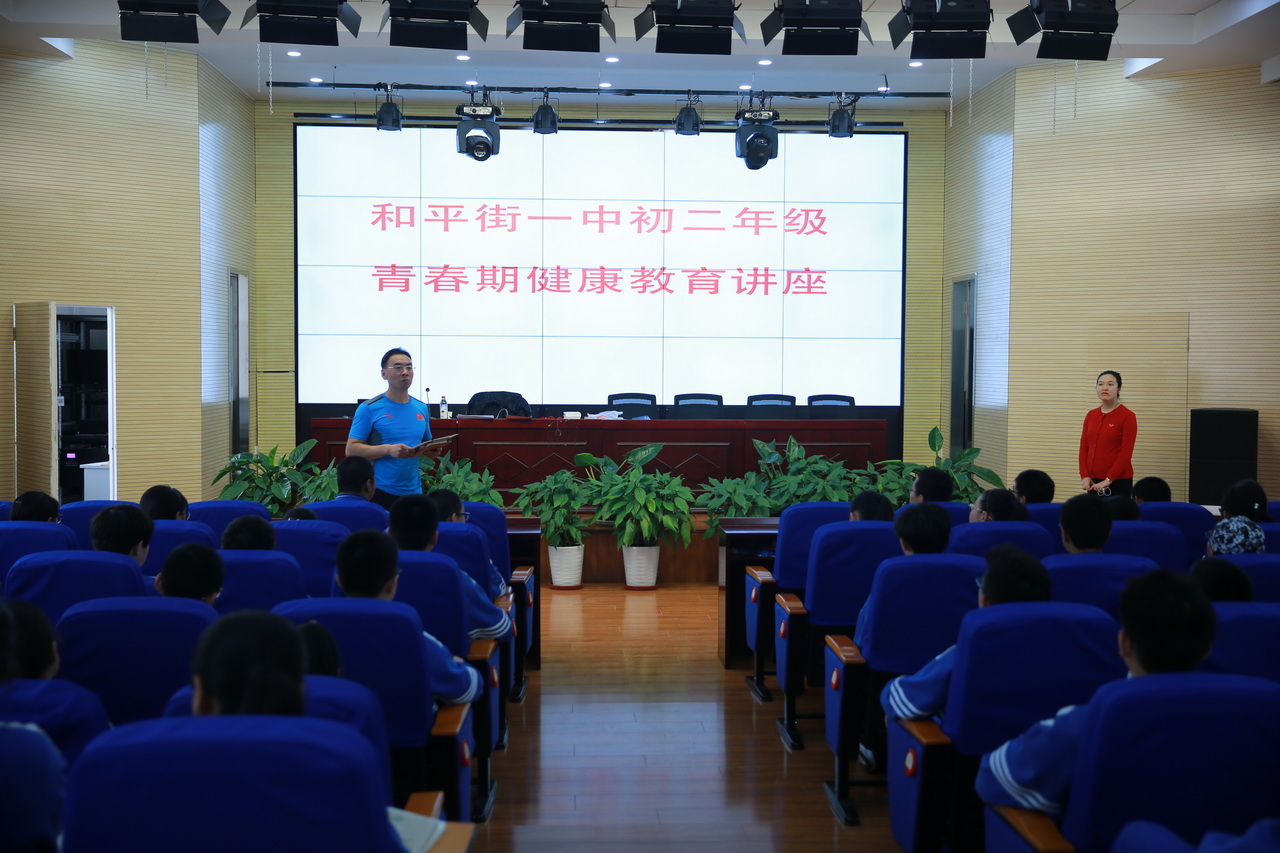 为进一步加强对学生的青春期健康教育,增进学生的健康意识和自我保护能力,引导学生科学面对青春期身心的各种变化,树立积极合理的异性交往观念,让学生平稳顺利度过青春期,2018年4月17日下午,和平街一中和平街校区邀请中国人口宣传教育中心健康科普青年讲师团讲师高晶老师前来为初二年级学生开展青春期健康教育讲座。