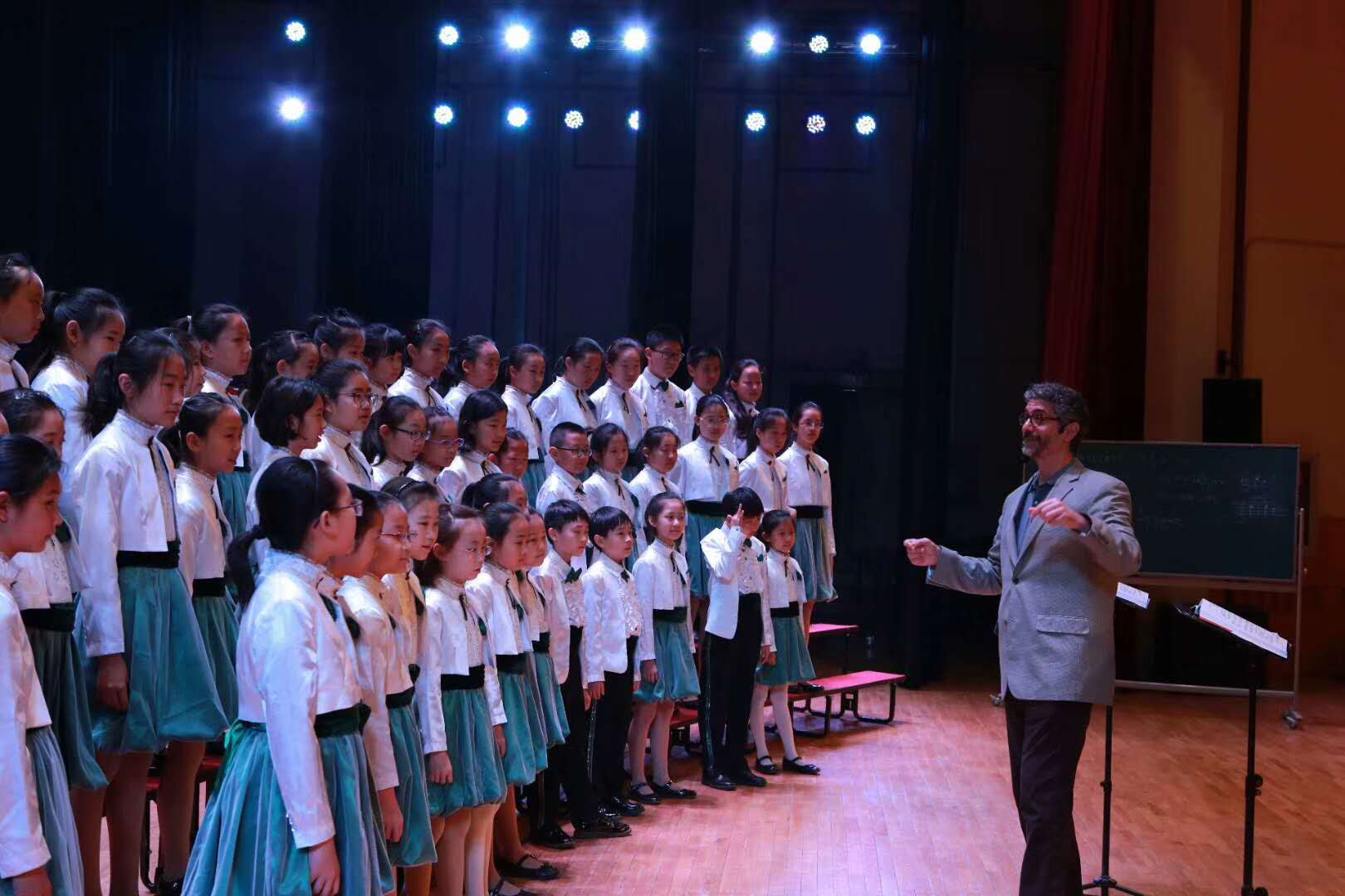 在指导环节中,费尔南多博士首先肯定了合唱团员们及指导教师张馨文老师、周伶老师的精彩表现,并根据团员们对作品的演绎情况,进行了细致而有效的指导。费尔南多博士鼓励孩子们在演唱非洲音乐时,要更加的欢快,并做一些身体律动来辅助感受音乐情绪;在演唱《let it go》时要多用一些气声;在演唱《a child of song》时,多注意力度变化与控制。这些指导为老师们和孩子们提供了全新的视野,为孩子们更好的表达音乐作品提供了宝贵的意见。合唱团的师生们都表示受益匪浅。