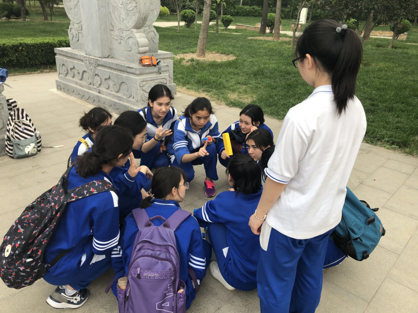 为了缓解高考压力,激发同学们坚定信念、克服困难、迎战高考的斗志,2018年5月5日,和平街一中组织内地新疆高中班高三年级学生到园博园开展社会实践活动。